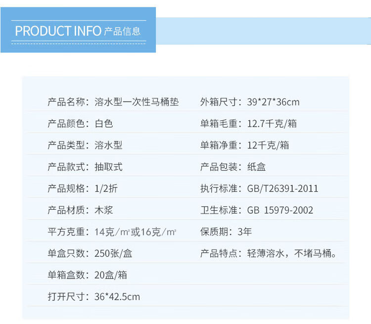 海斯迪克 可溶水一次性马桶坐垫纸 KQ145-4 16克 250张 1盒
