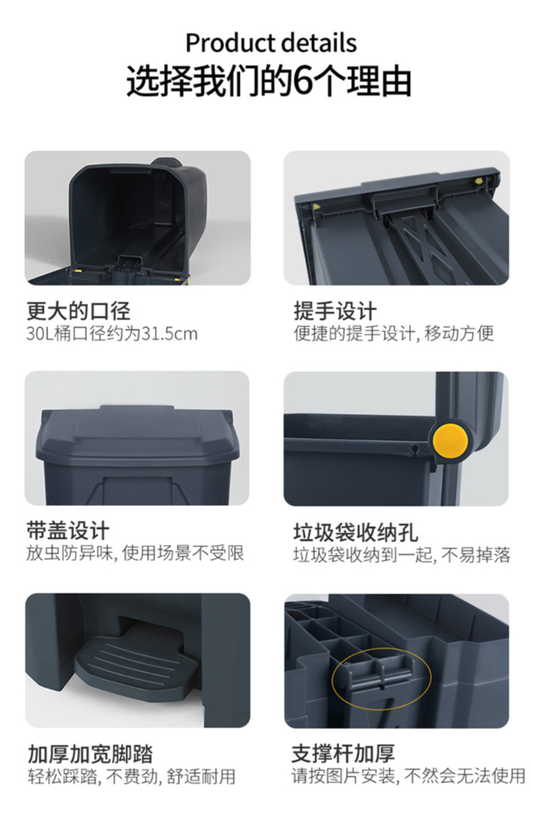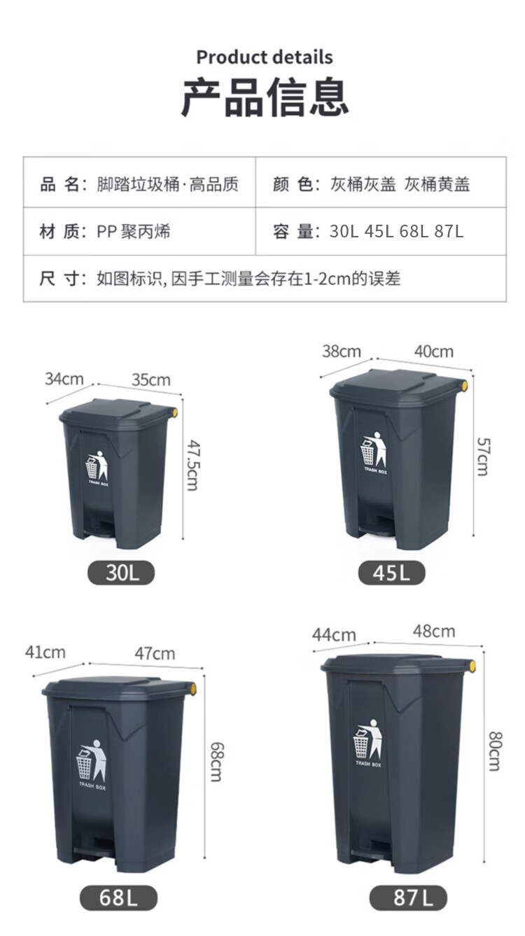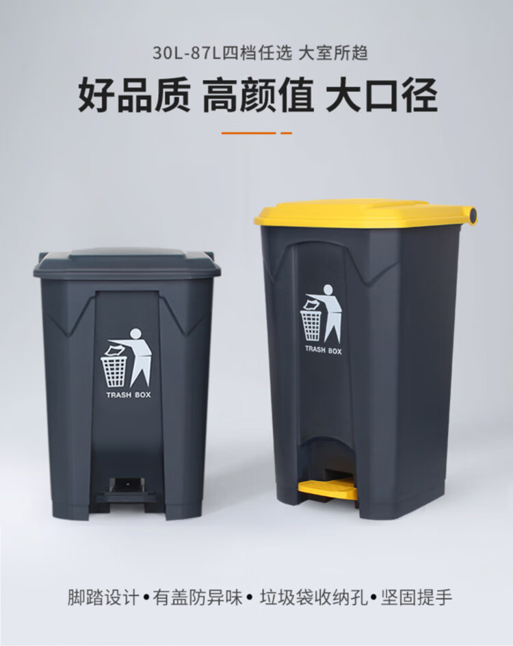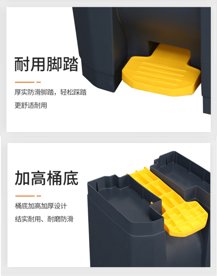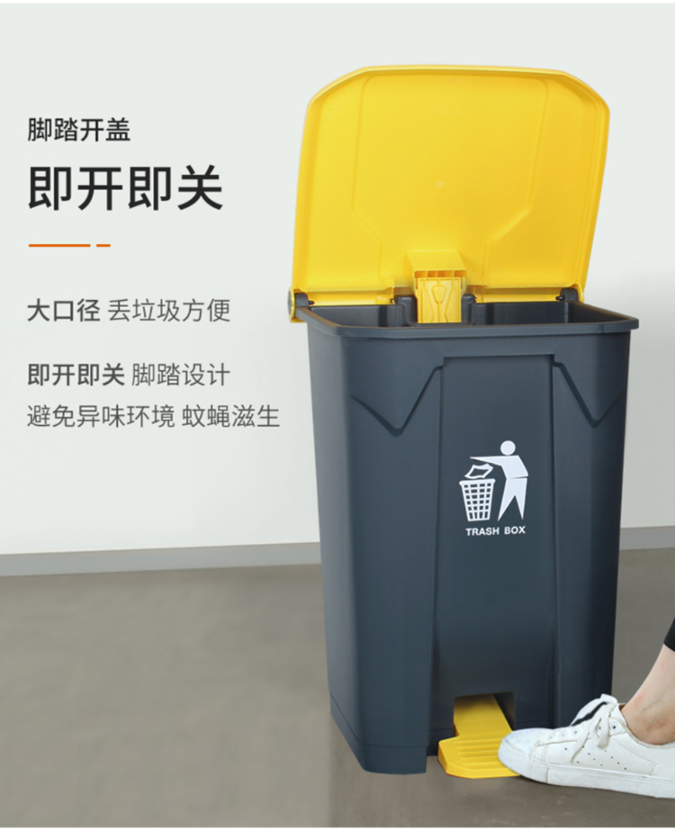 海斯迪克 脚踏垃圾桶 KQ156-1 灰黄色 30L 1个