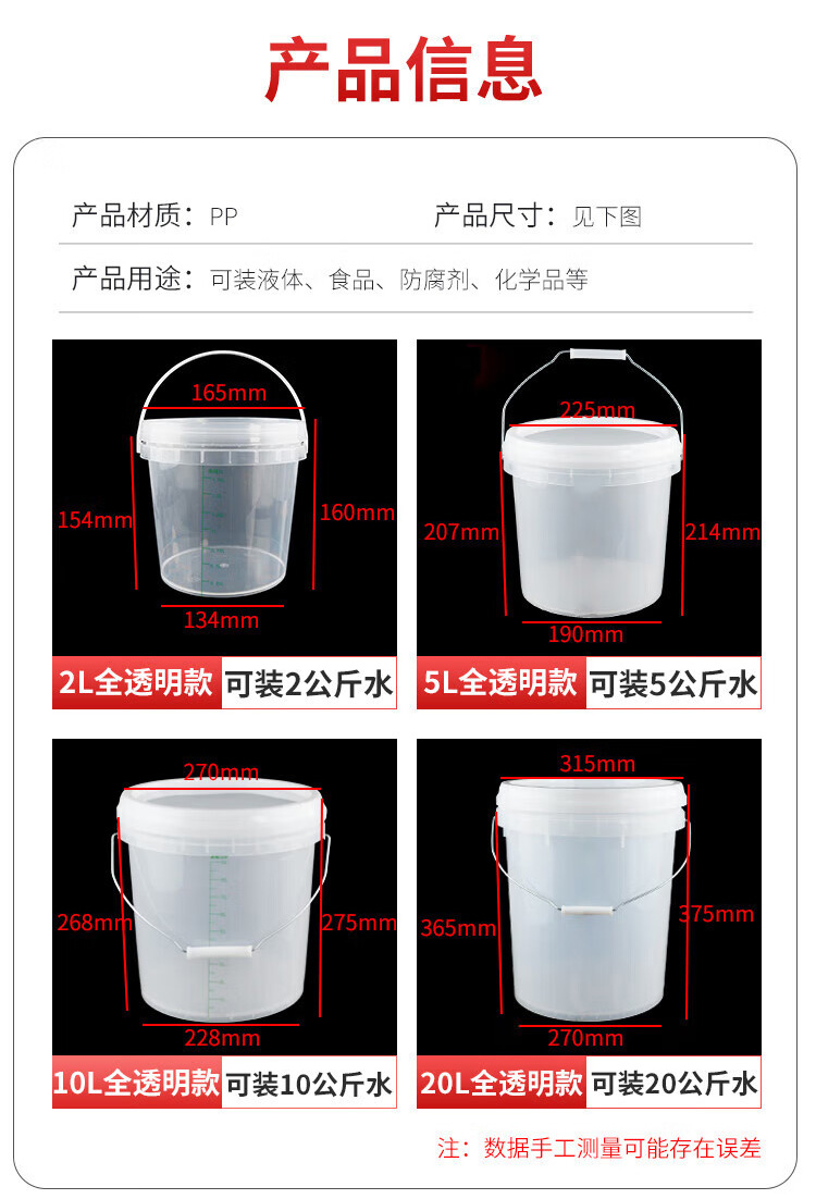 海斯迪克 透明刻度水桶 KC44-1 PP 2L 1件