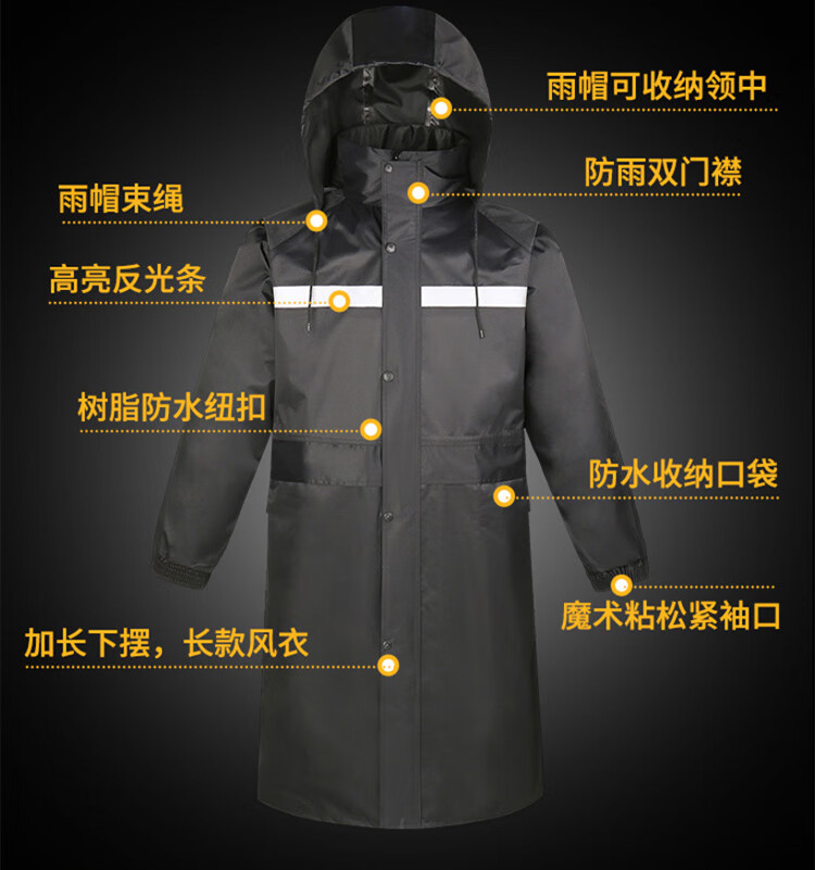 海斯迪克 长款风衣式雨衣 KG72-6 黄色L 1件