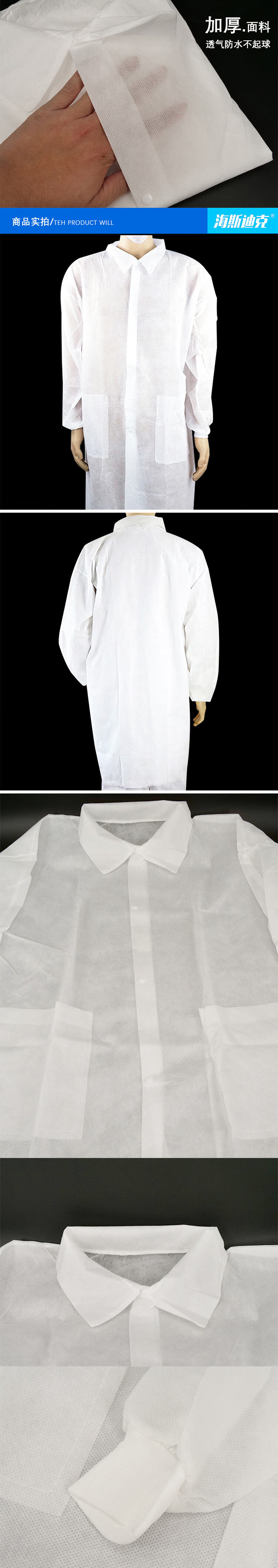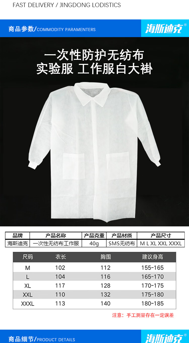 海斯迪克 一次性无纺布防护工作服 KG75-9 蓝色2XL码 1件