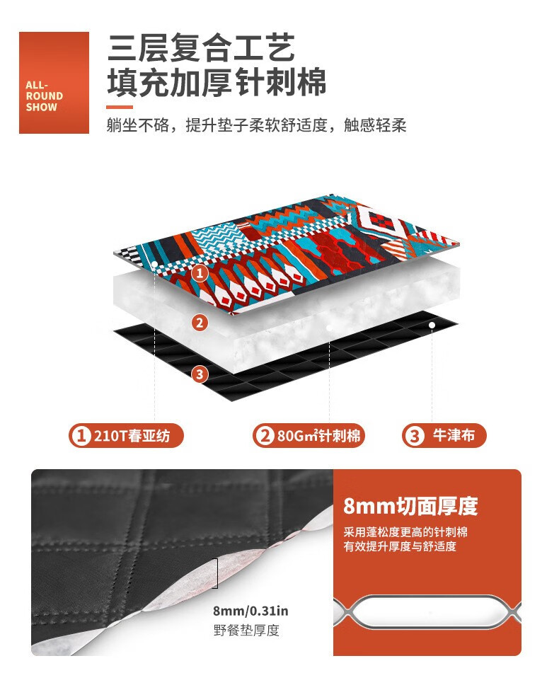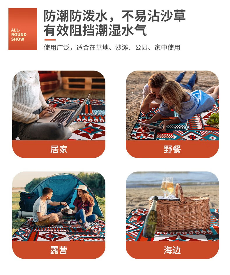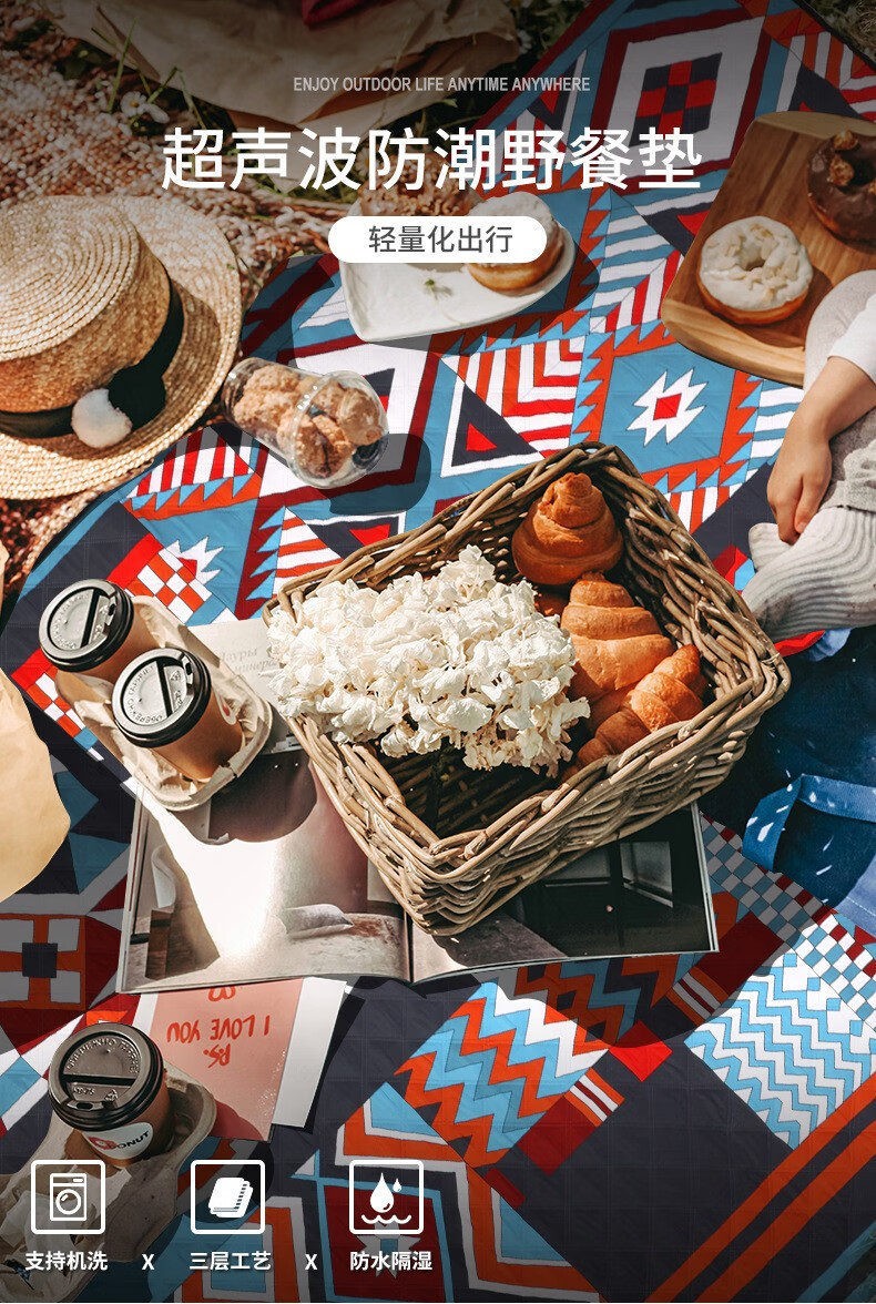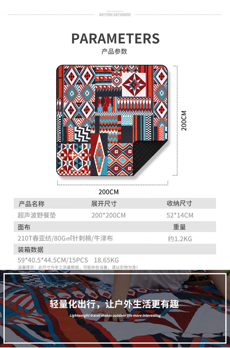 飞图乐 民族风超声波复合野餐垫 YCD0302 红蓝色方块 2*2m 1件