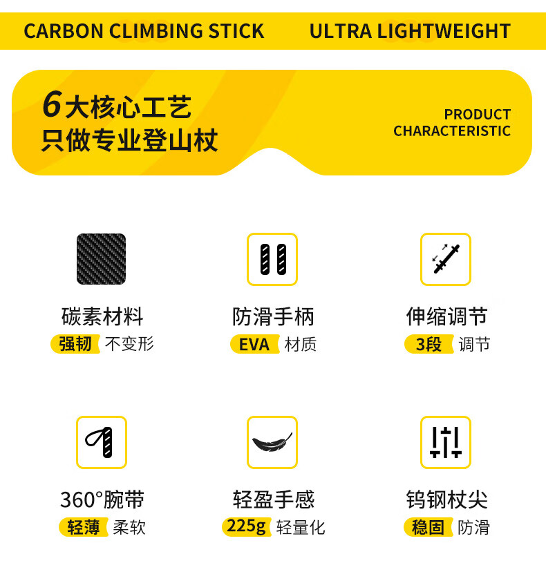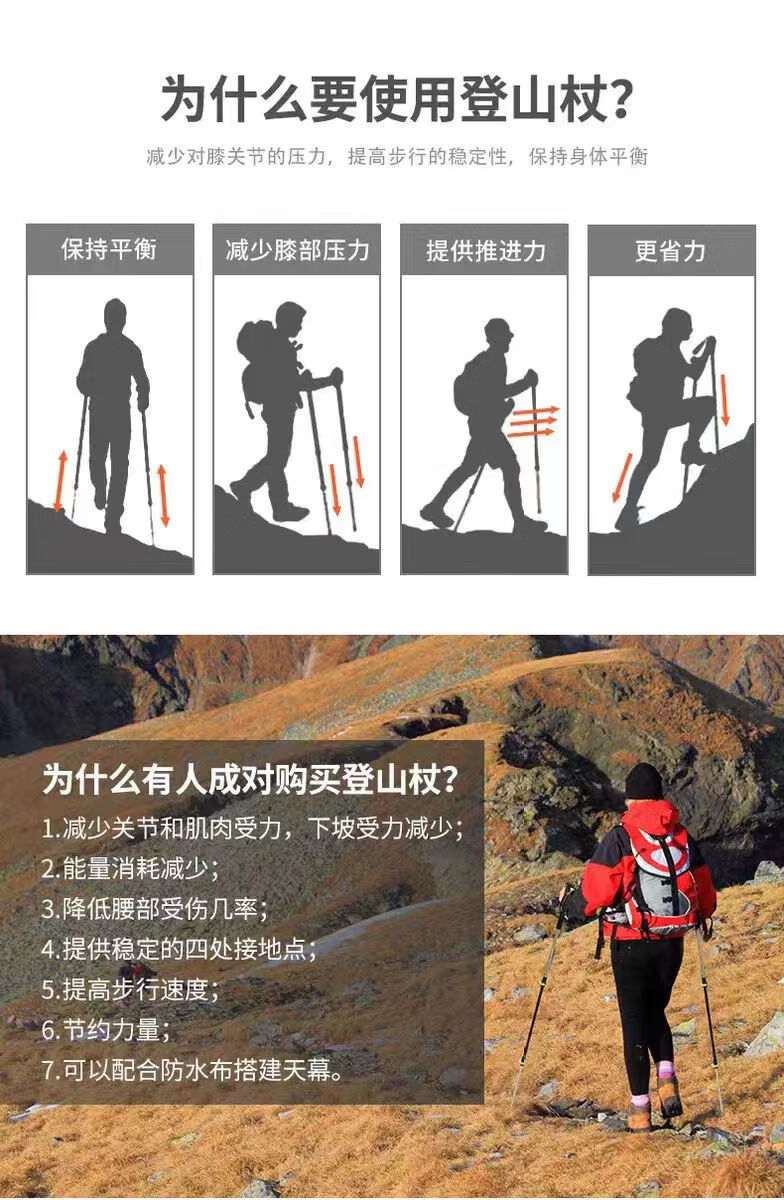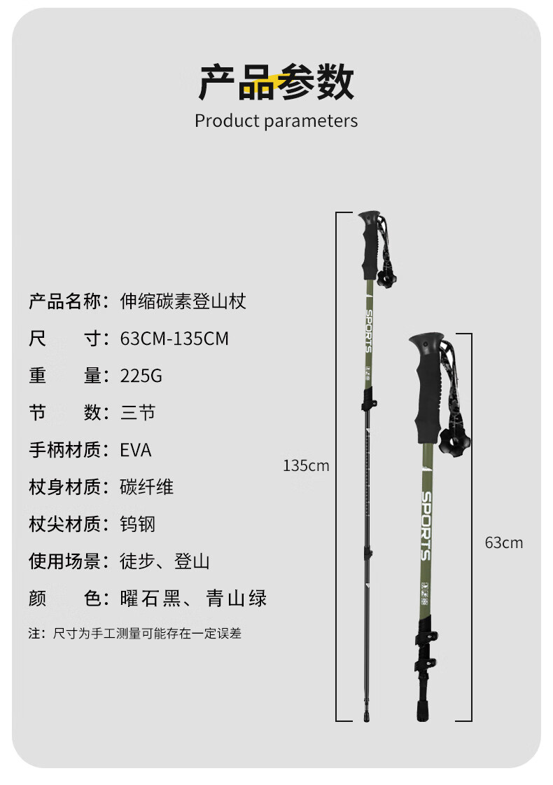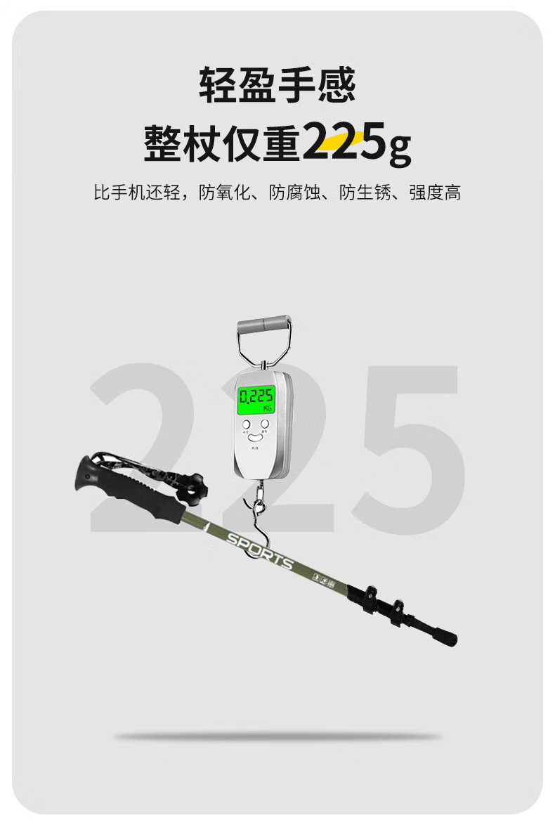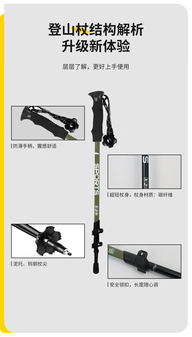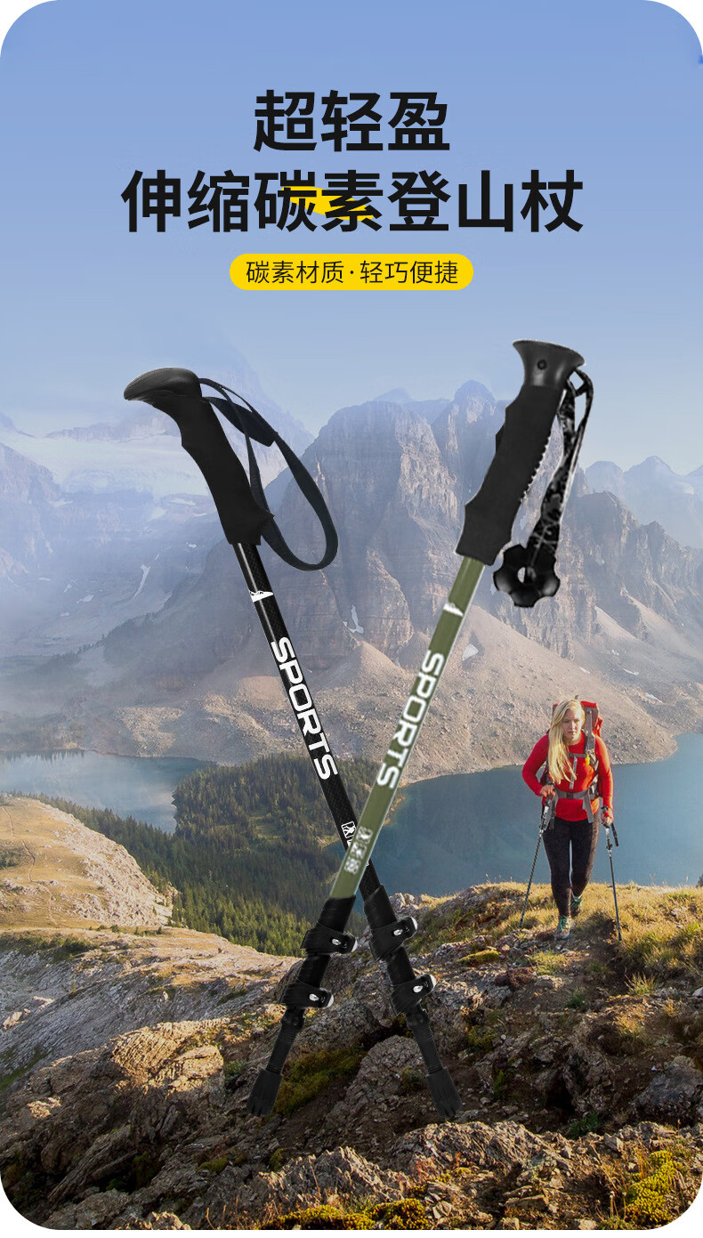 飞图乐 碳素纤维三节登山杖 TDSZ0102 青山绿 63-135cm 1个