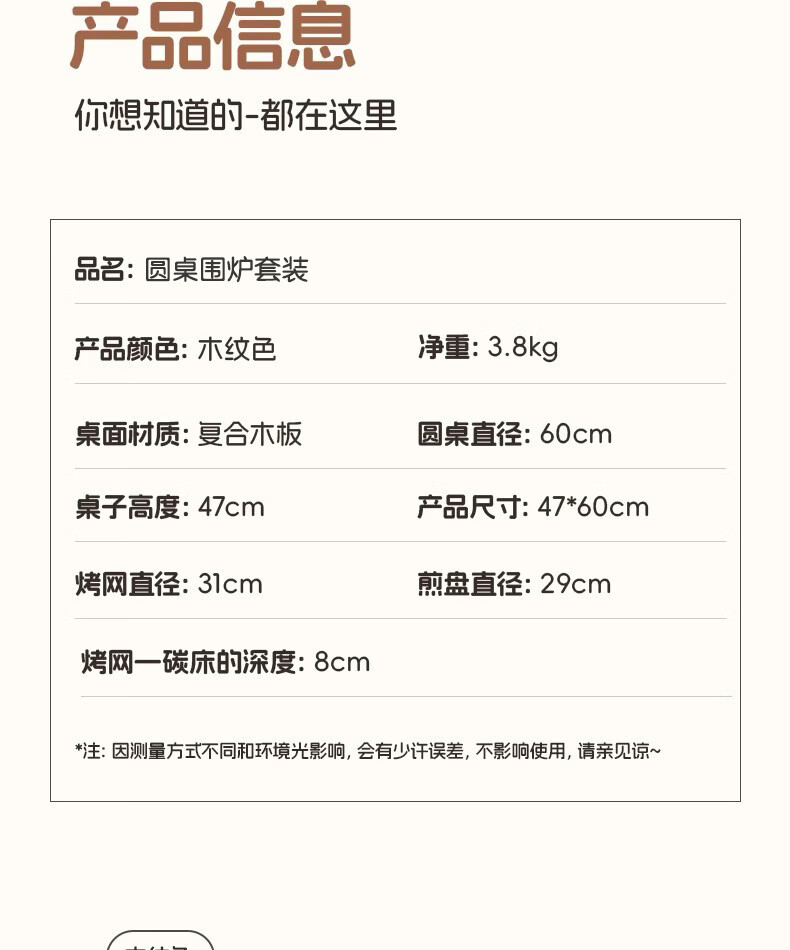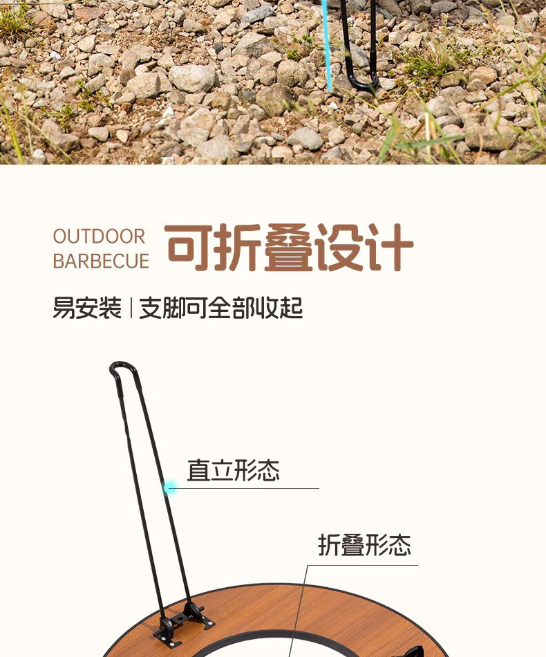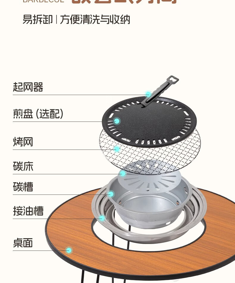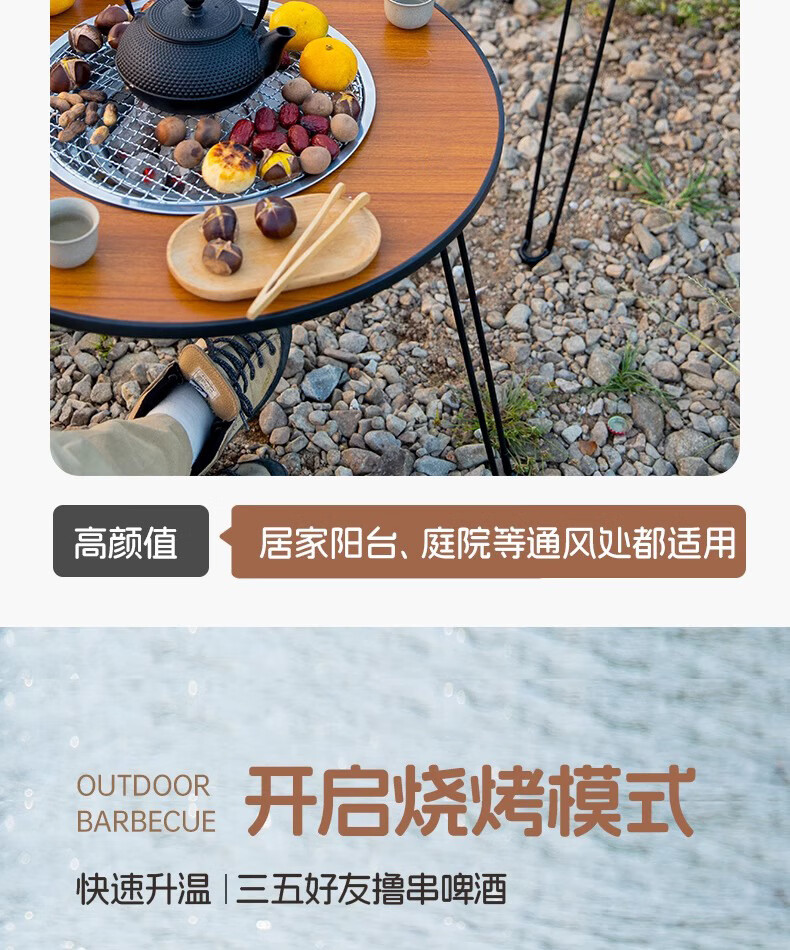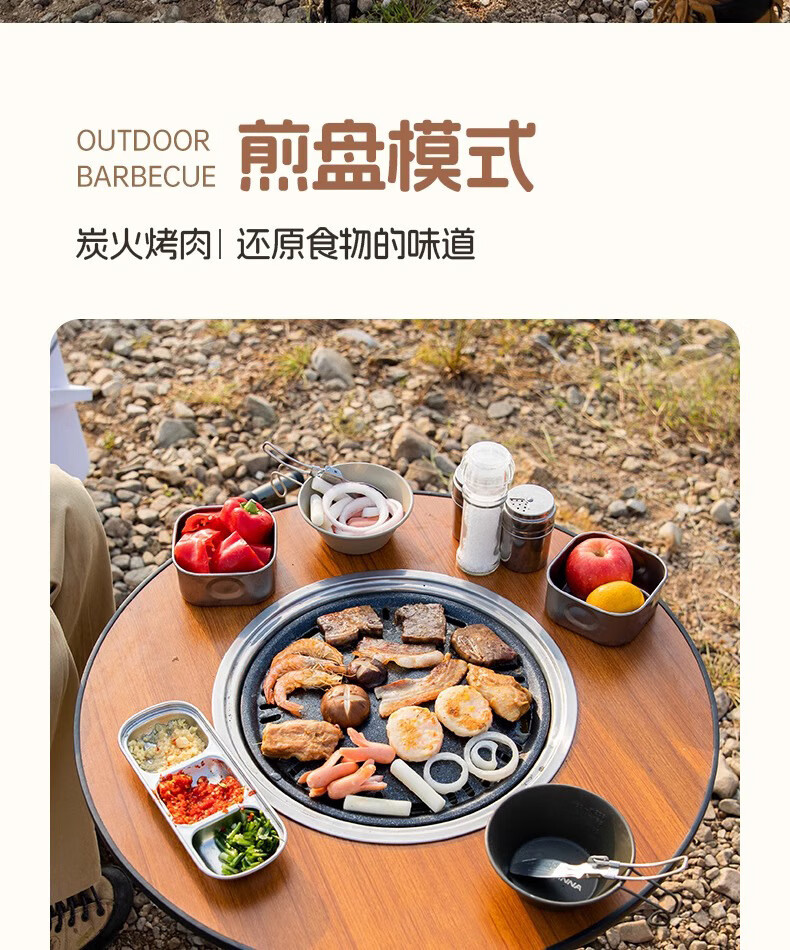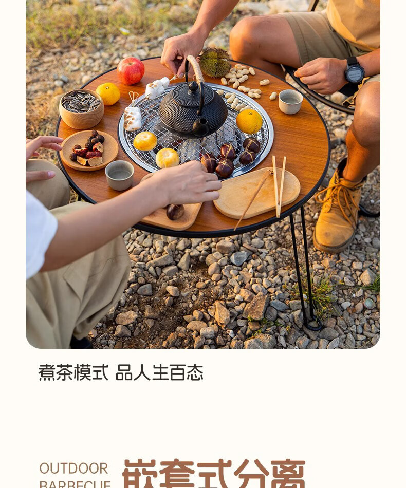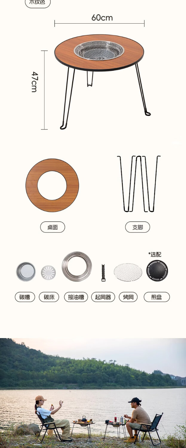 飞图乐 圆桌围炉烧烤套装 WLTZ0301 木纹色 47*60*60cm 1套