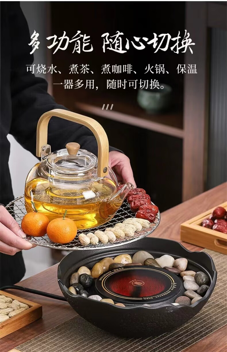烤网+鹅卵石+电陶炉+1L玻璃壶