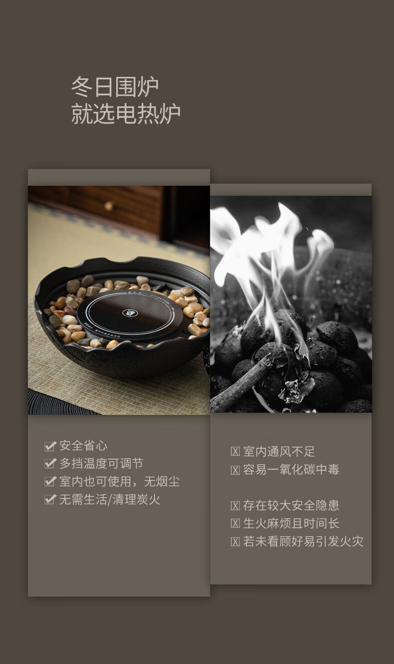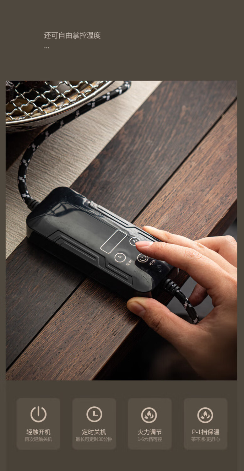 飞图乐 黑石浪围炉煮茶套装 DTL0102 烤网+鹅卵石+电陶炉+1L玻璃壶 1000W 1套