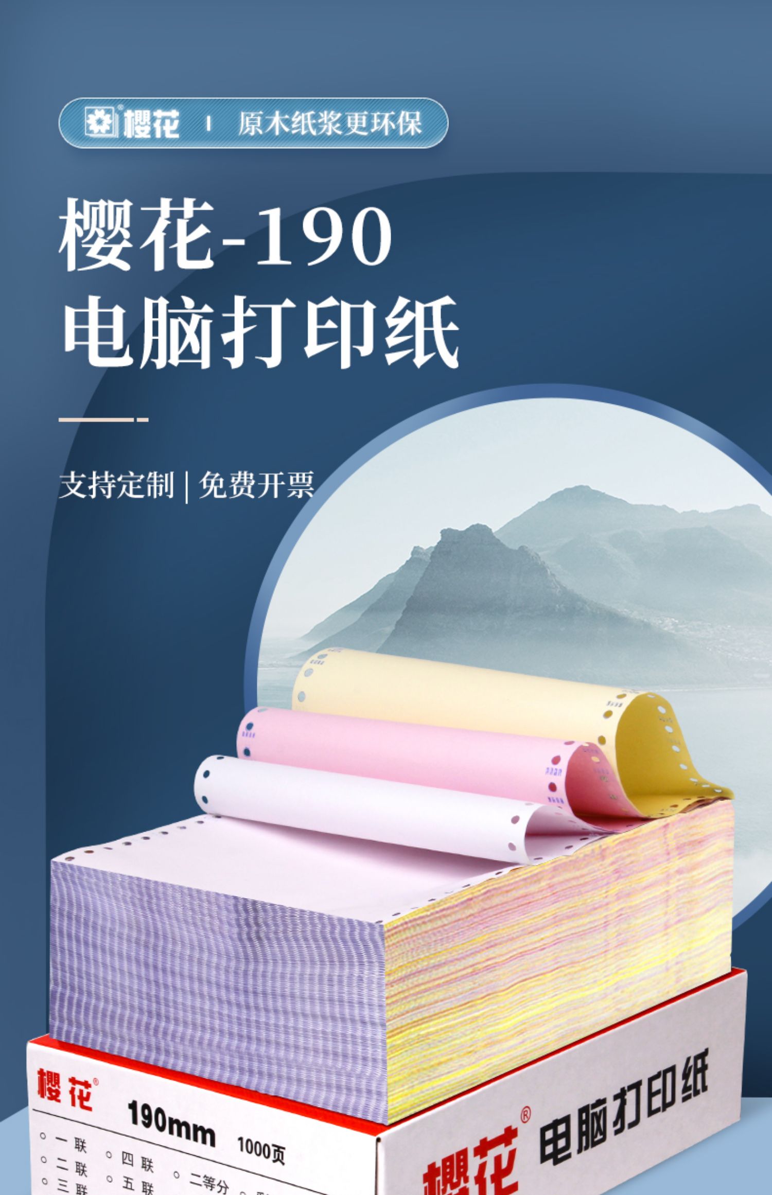 樱花 电脑打印纸 190mm针式三联三等分 1000页 1盒