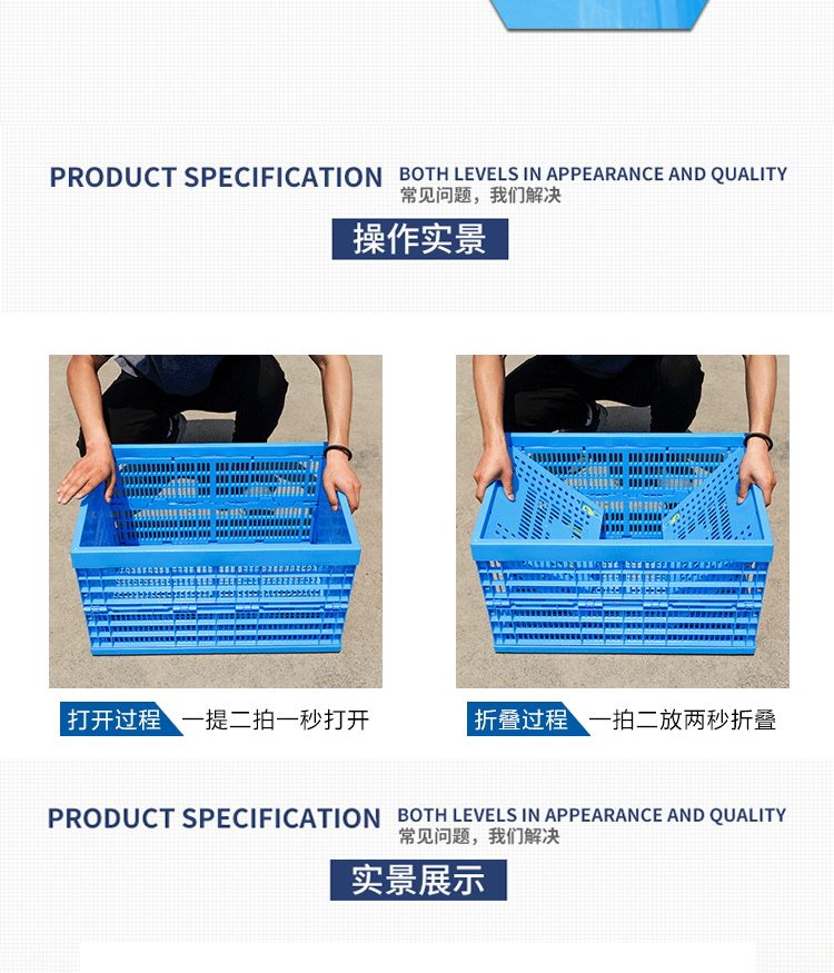 海斯迪克 折叠周转筐 KC57-10 塑料 蓝色 无盖 600*400*340mm 1件