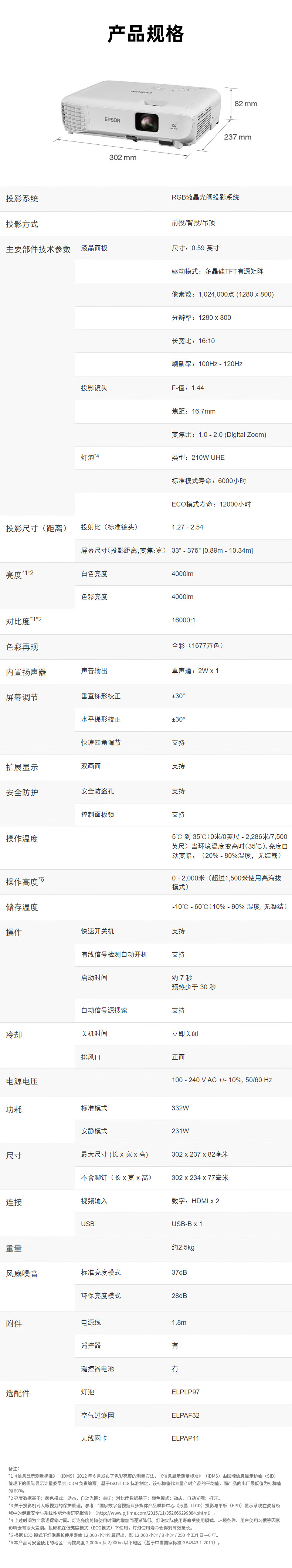 爱普生 商用投影机 CB-W53 0.59英寸 1个