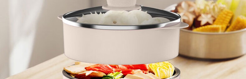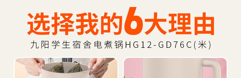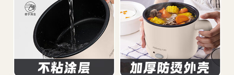 九阳 电煮锅 GD76C 带蒸屉 米色 1.5L 300W/600W 1个