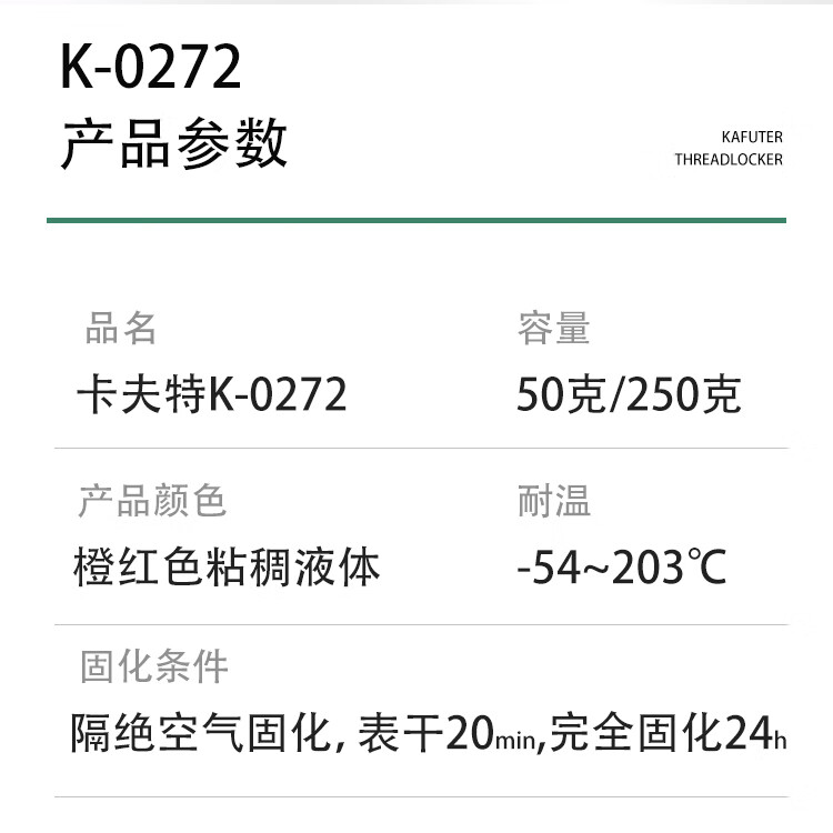 卡夫特 高强度耐高温螺纹厌氧胶 K-0272 50g 1支