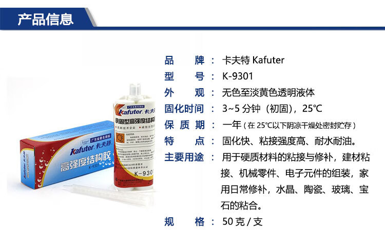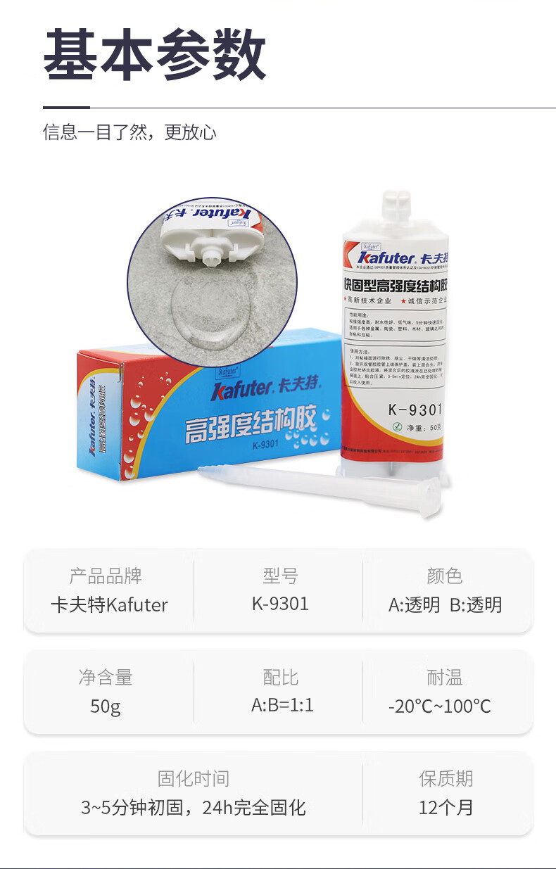 卡夫特 快固型高强度结构胶 K-9301 50g 1个