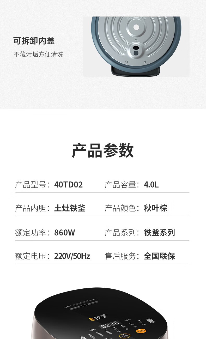 九阳 电饭煲 F-40TD02 4L 860W 1个