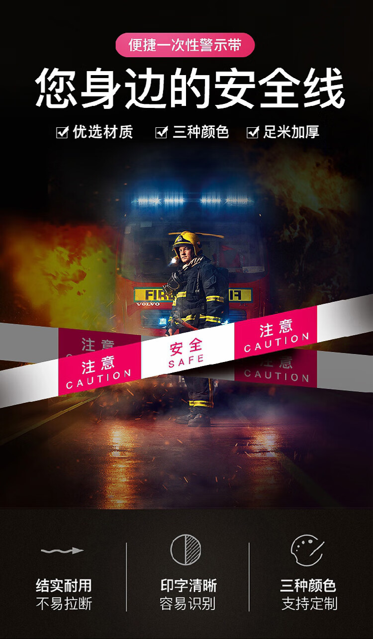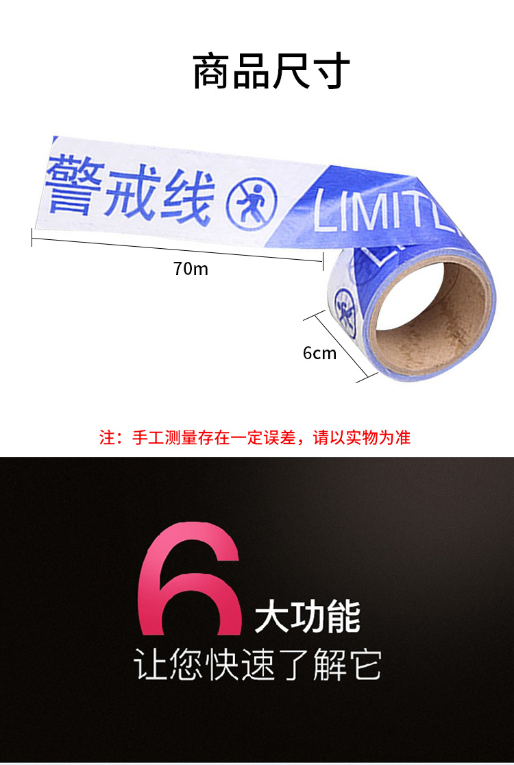 海斯迪克 一次性警示带 KS164-1 PE 70m 红白 1个