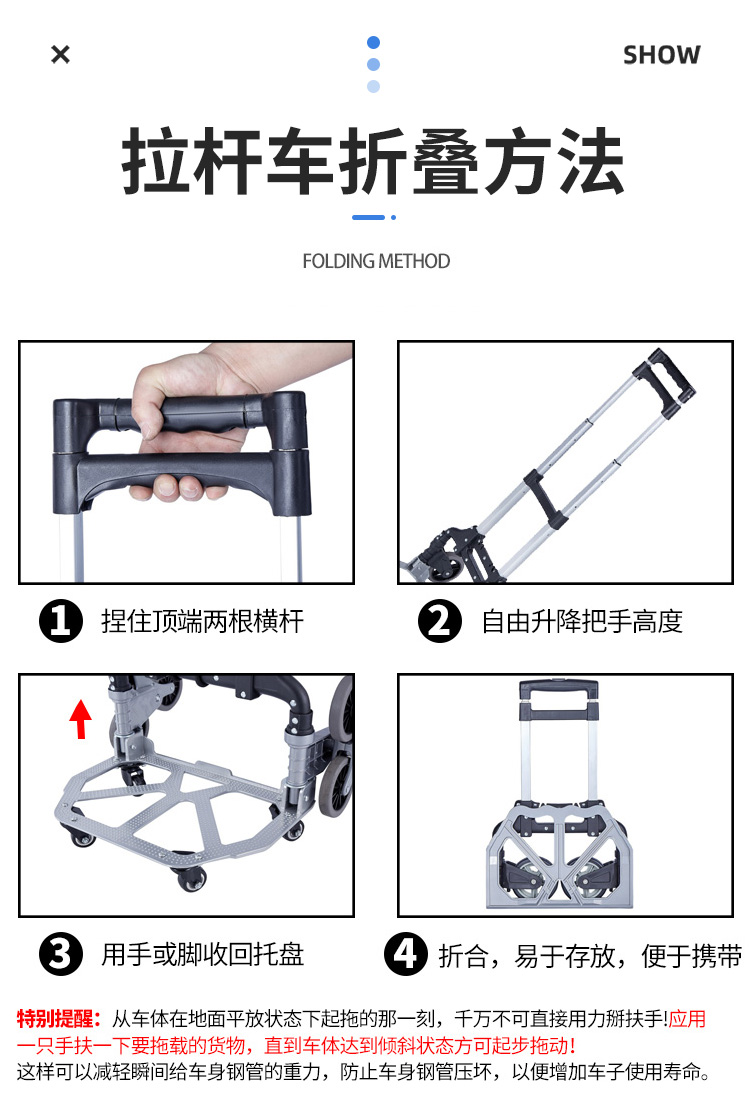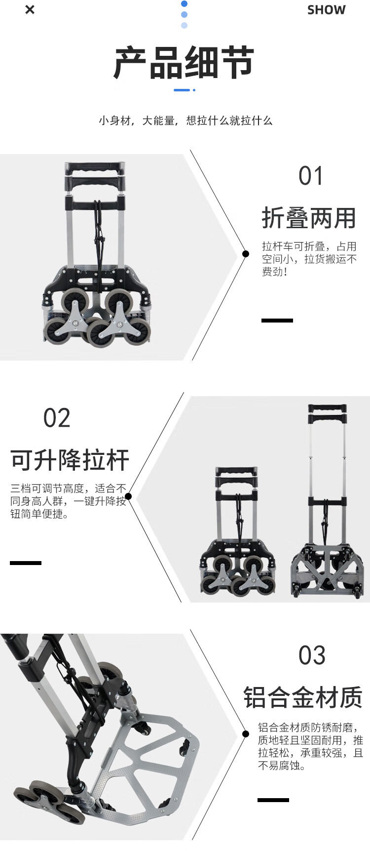 海斯迪克 铝合金拉杆车 KC72-2 十轮爬楼款 1件