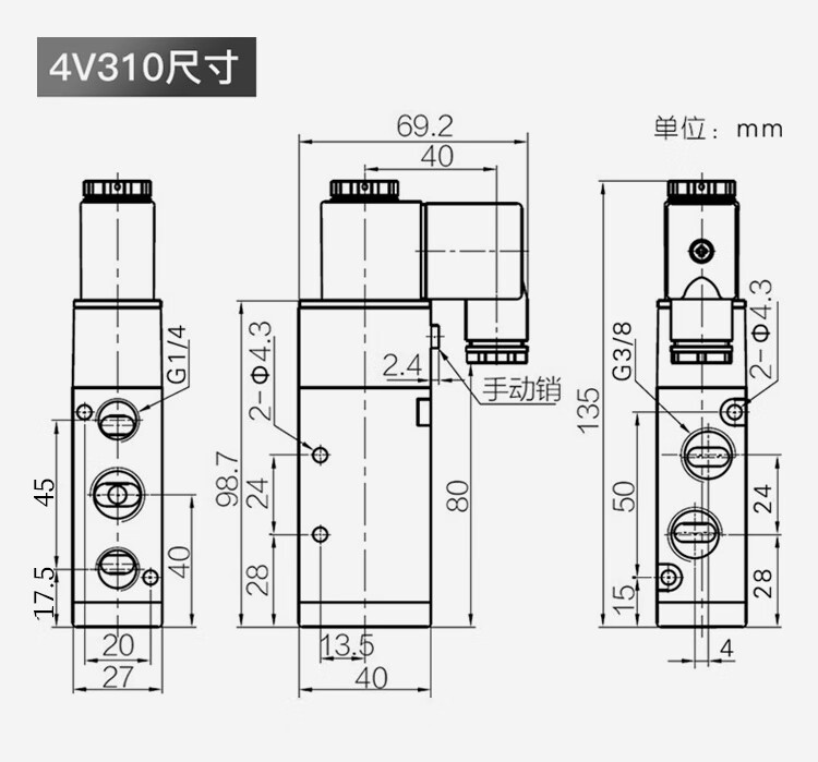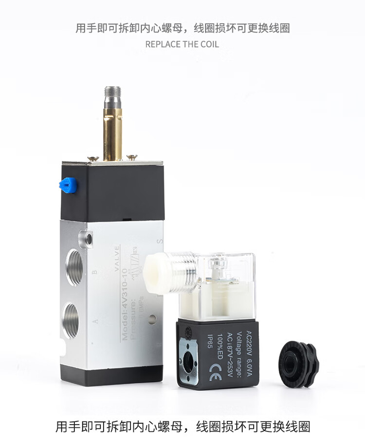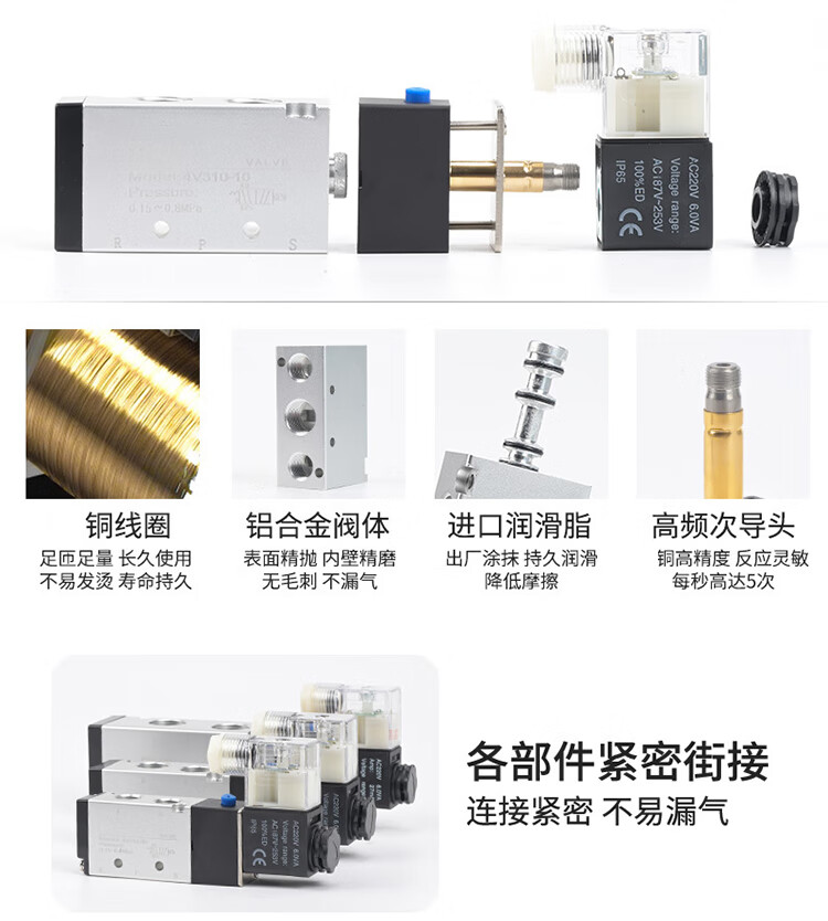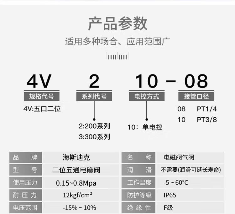 海斯迪克 二位五通电磁阀 KO14-3 4V210-08(AC220V) 1个