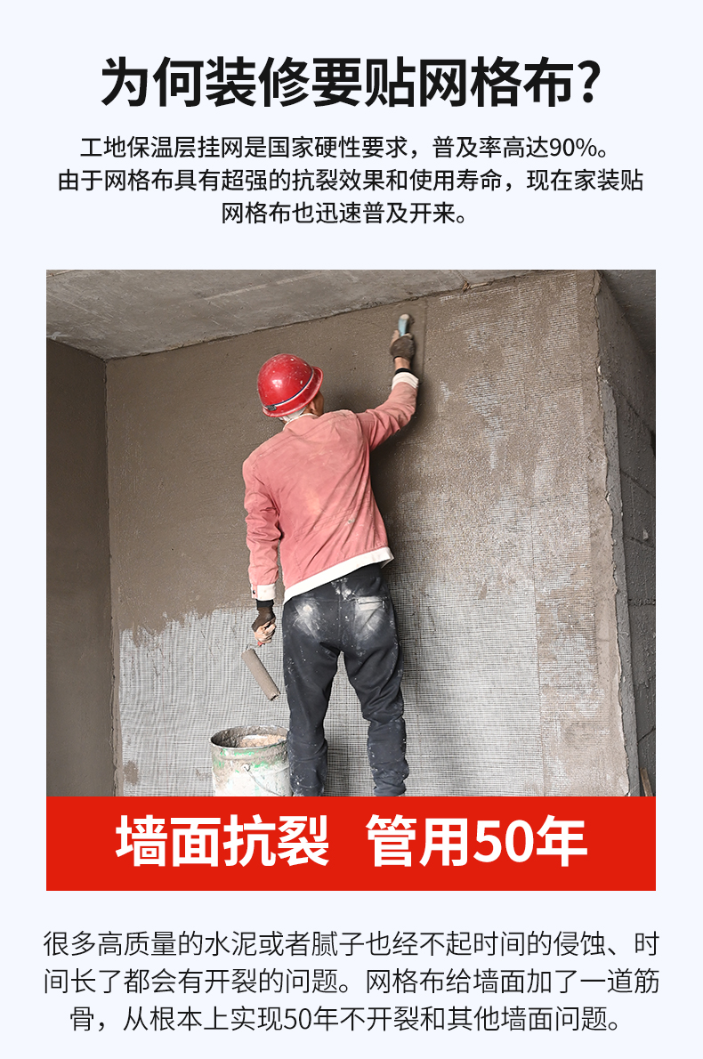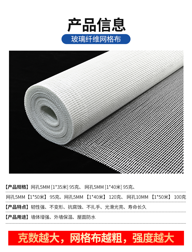 国产通用 抗裂玻纤网 网孔0.55*0.55cm 1m×50m 1卷