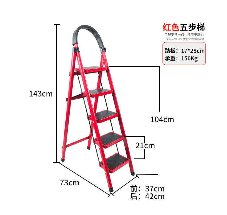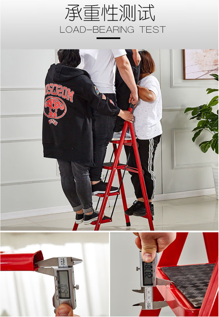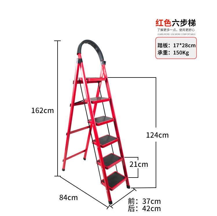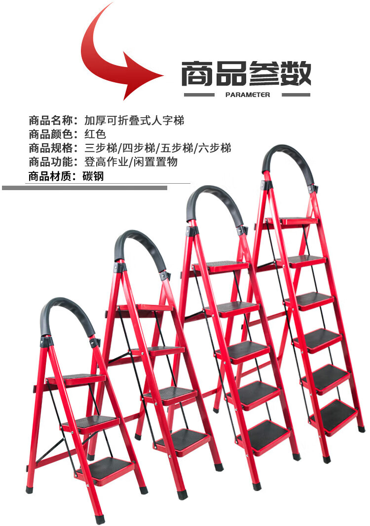 海斯迪克 折叠人字梯 KC90-4 红色 六步梯(载重150kg) 1件