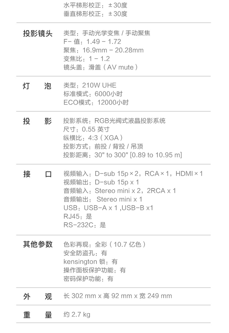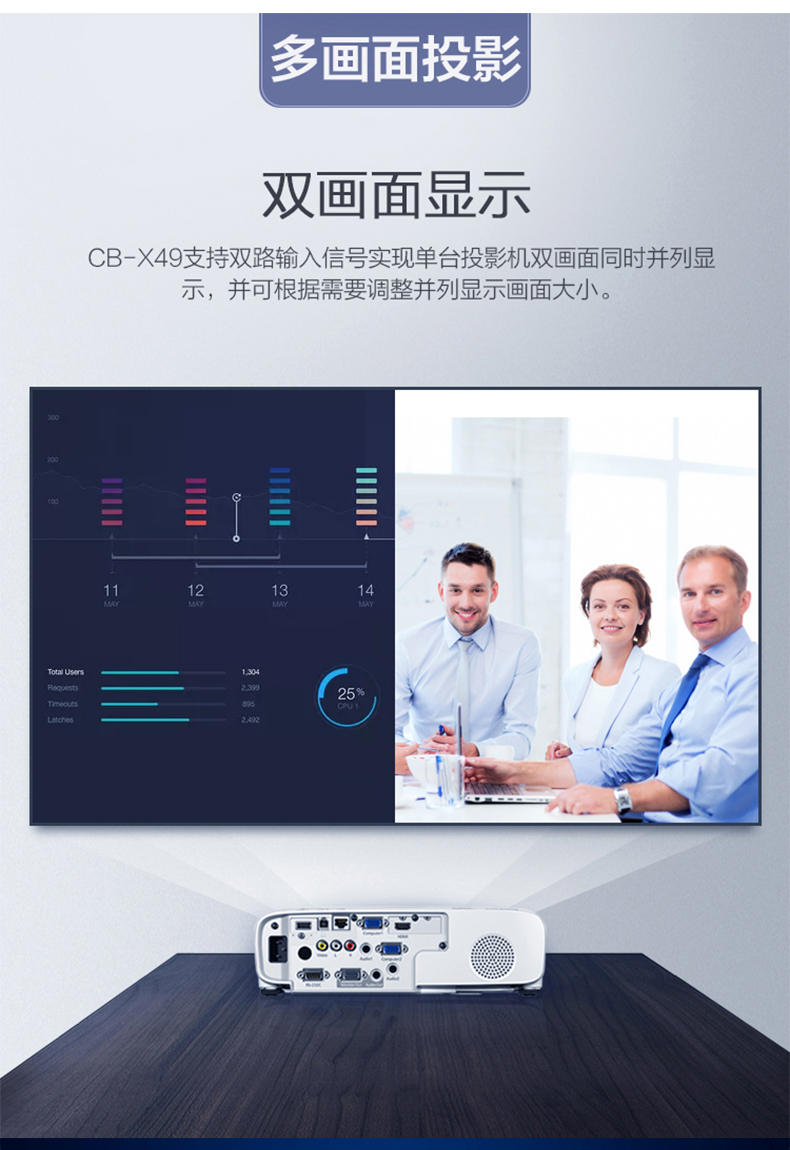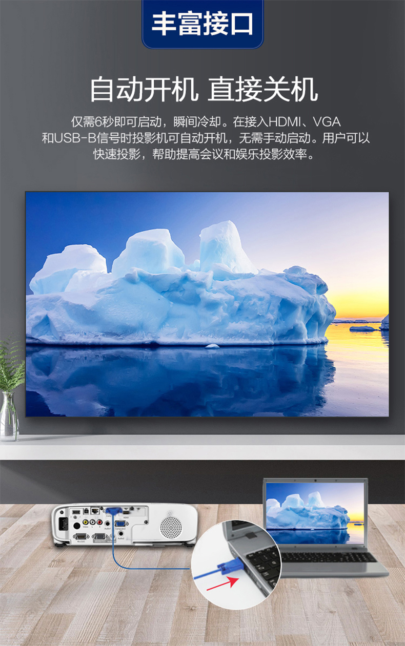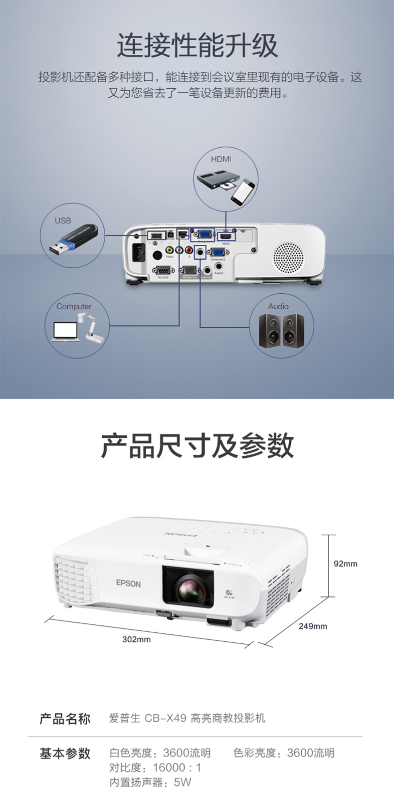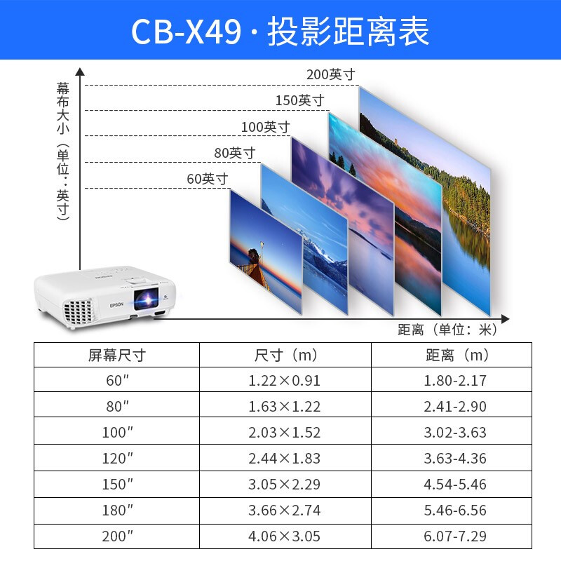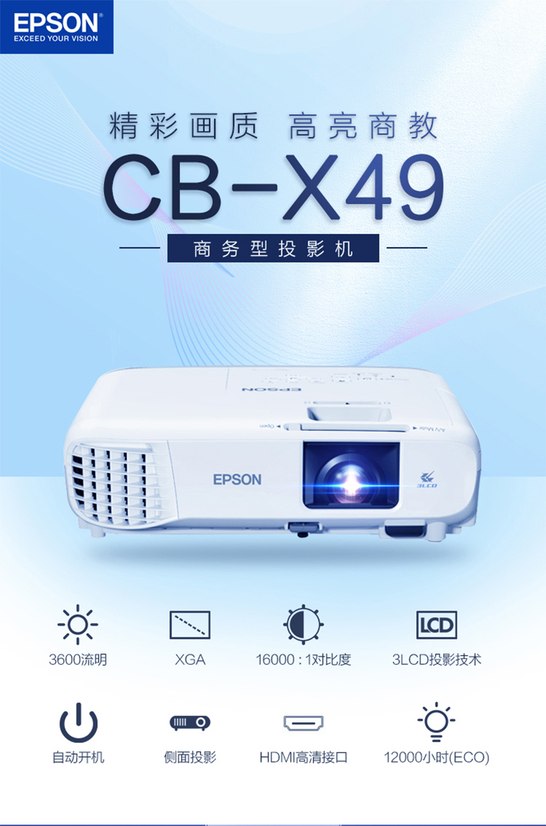 爱普生 办公会议专用投影仪 CB-X49 3600流明 支持侧面投影 1台