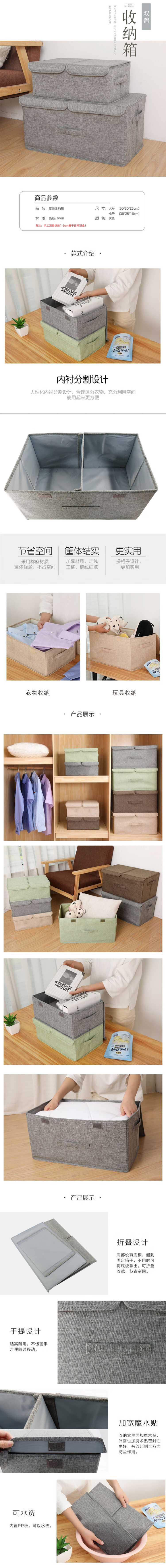 海斯迪克 折叠收纳箱 KC113-5 灰色 棉麻双盖大号 50*30*25cm 1件
