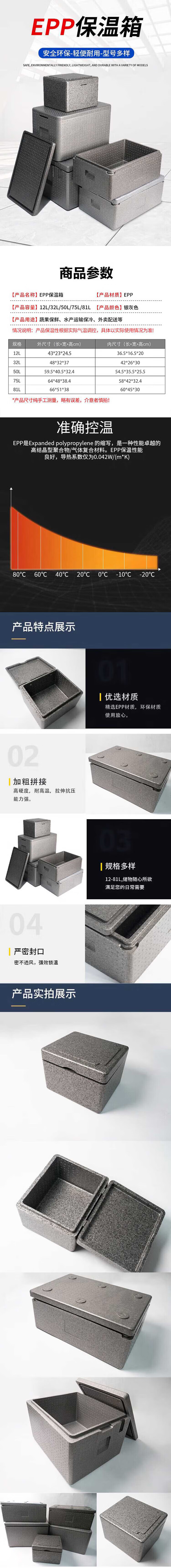 海斯迪克 EPP保温箱 KC126-2 32L 外480*320*370mm内420*260*300mm 1件