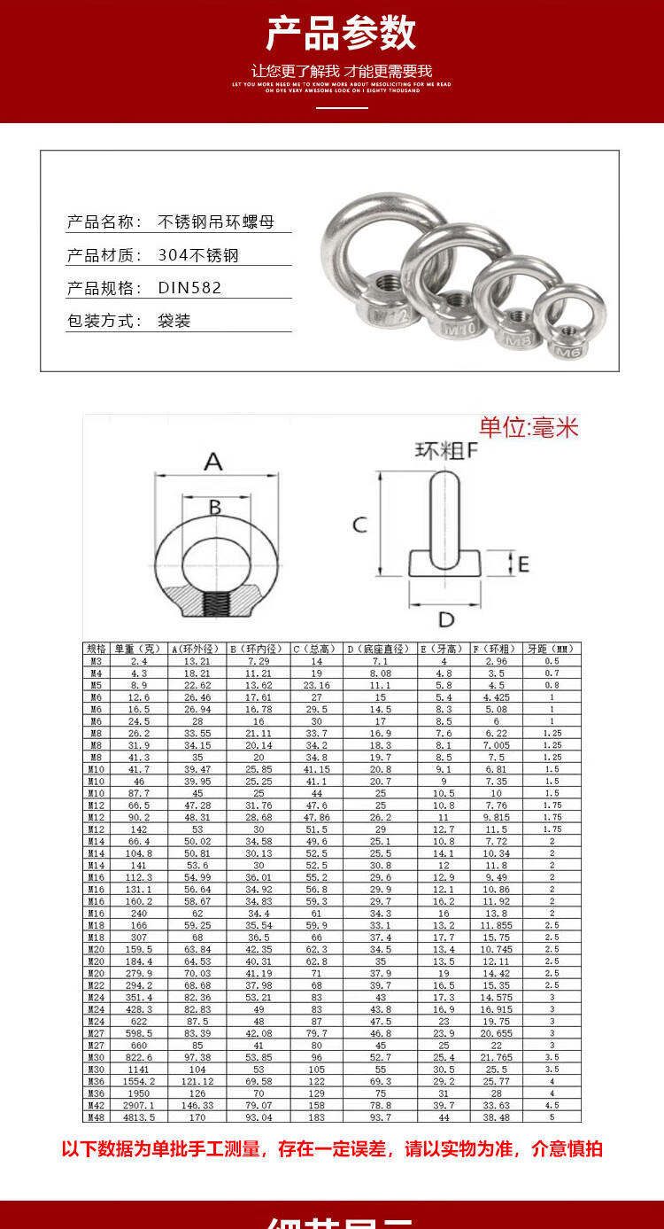 海斯迪克 304不锈钢吊环螺母 KJ51-14 本色 M36 1个