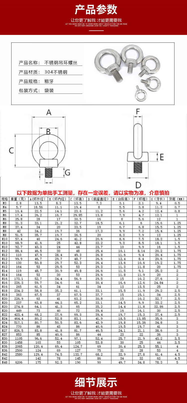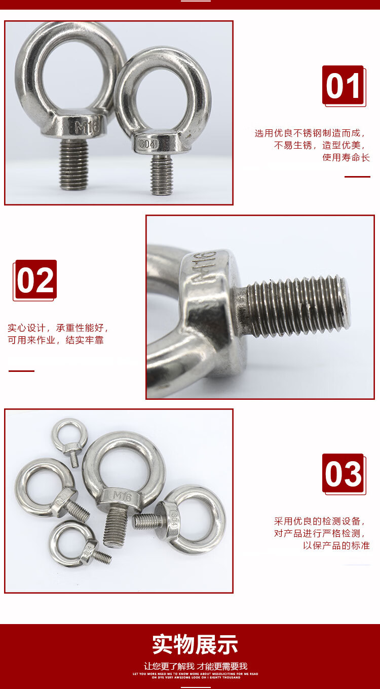 海斯迪克 304不锈钢吊环螺丝 KJ52-13 本色 M30 1个