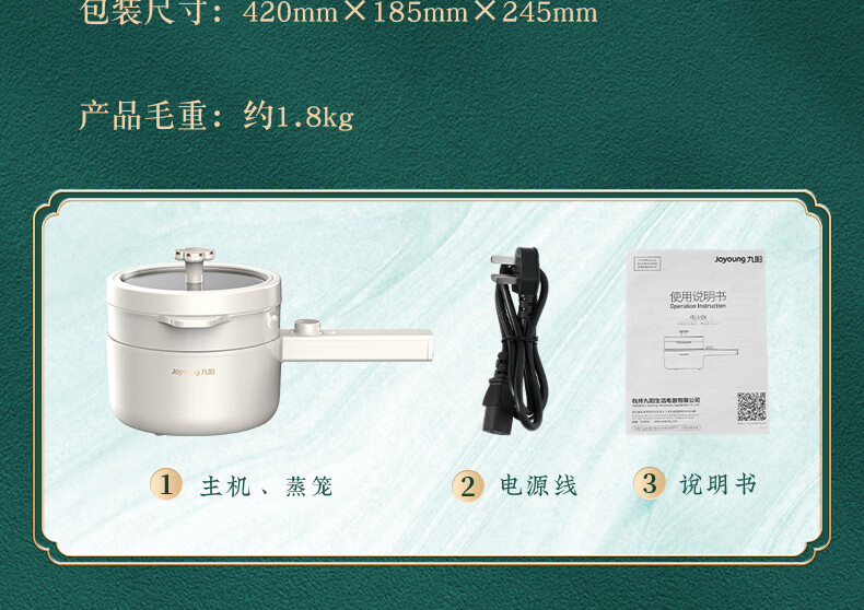 九阳 多功能不粘内胆电热锅 HG15-G622 白色 1.6L 1个