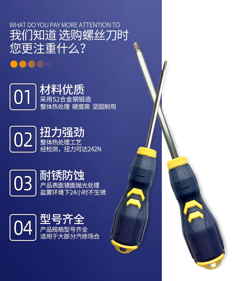 • 商品名称:长城精工 S2双色橡塑柄增强型花形螺钉旋具