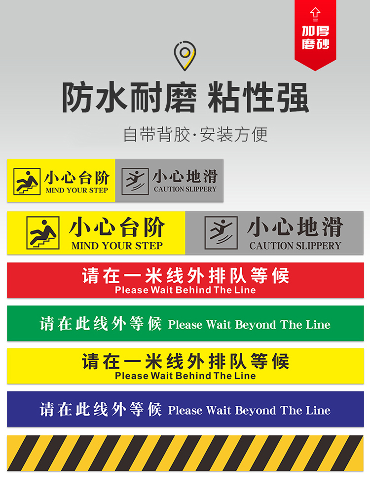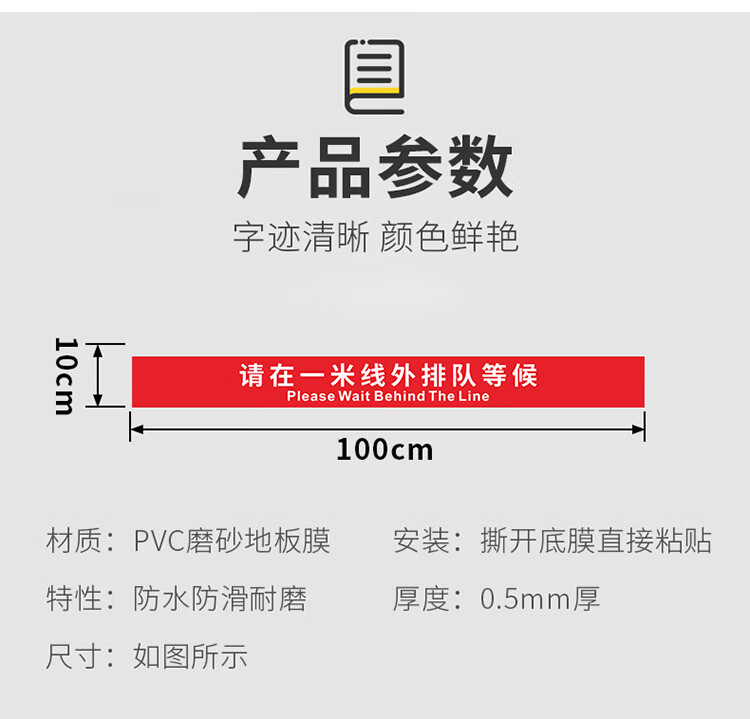 海斯迪克 间隔一米排队等候 地面耐磨标识贴纸 KS189-6 PVC 10*100cm 1个