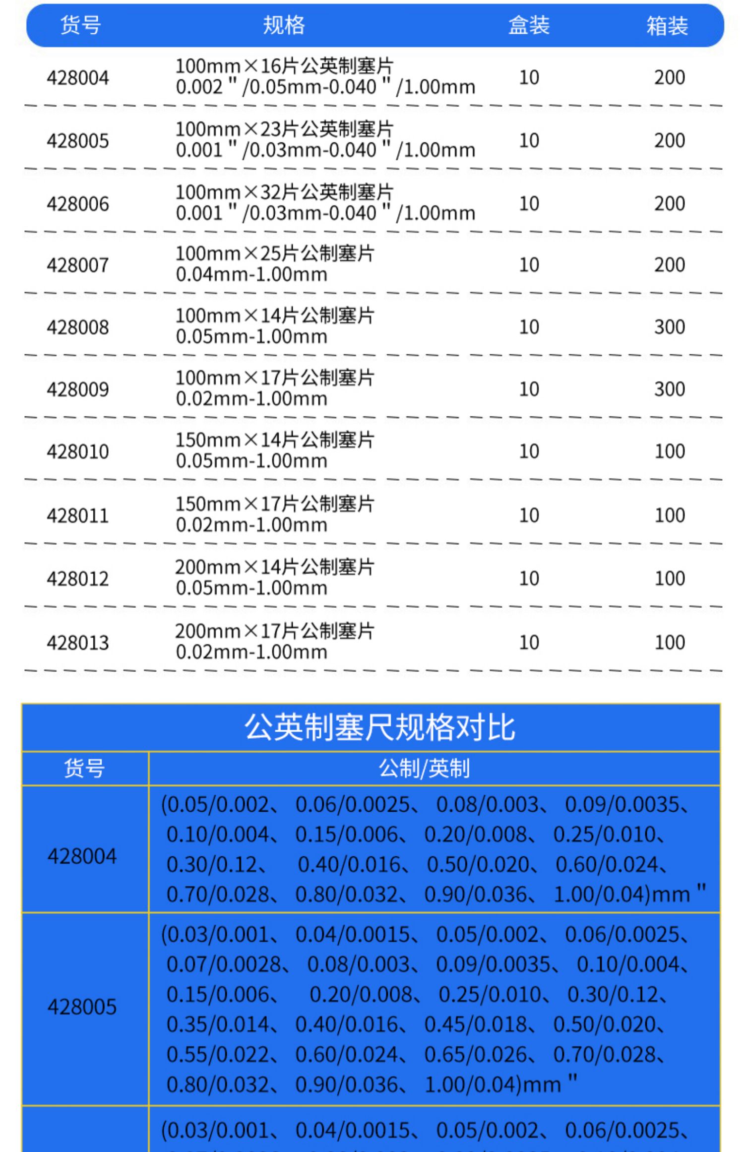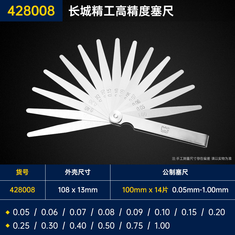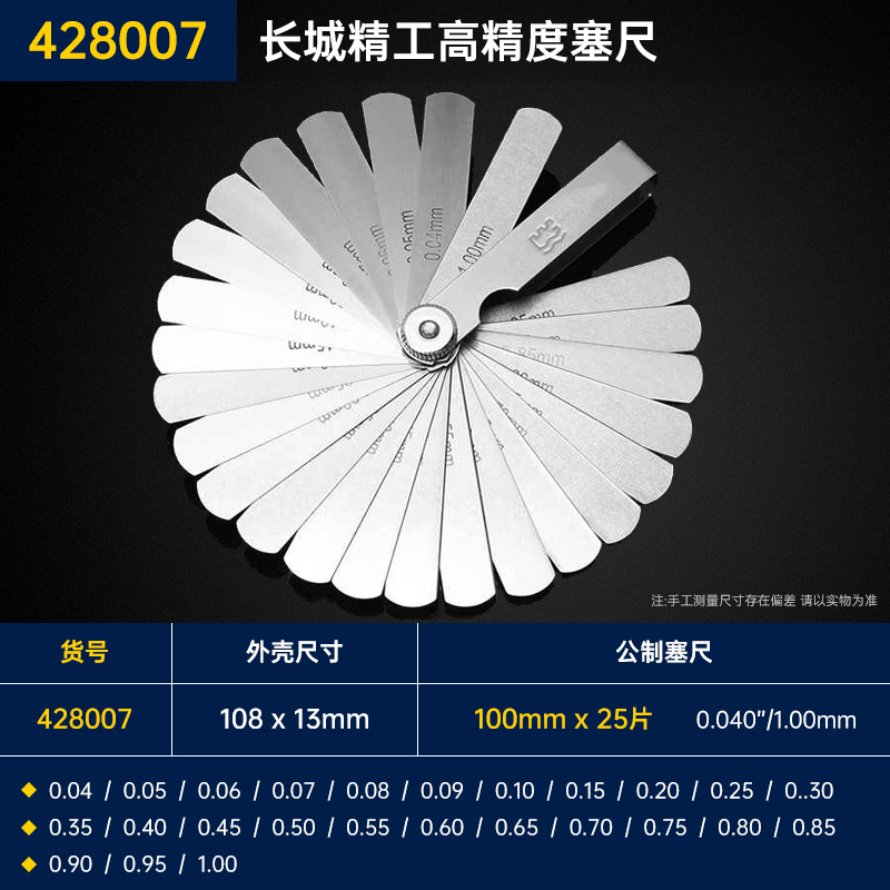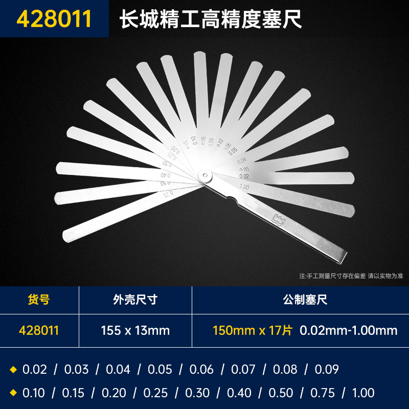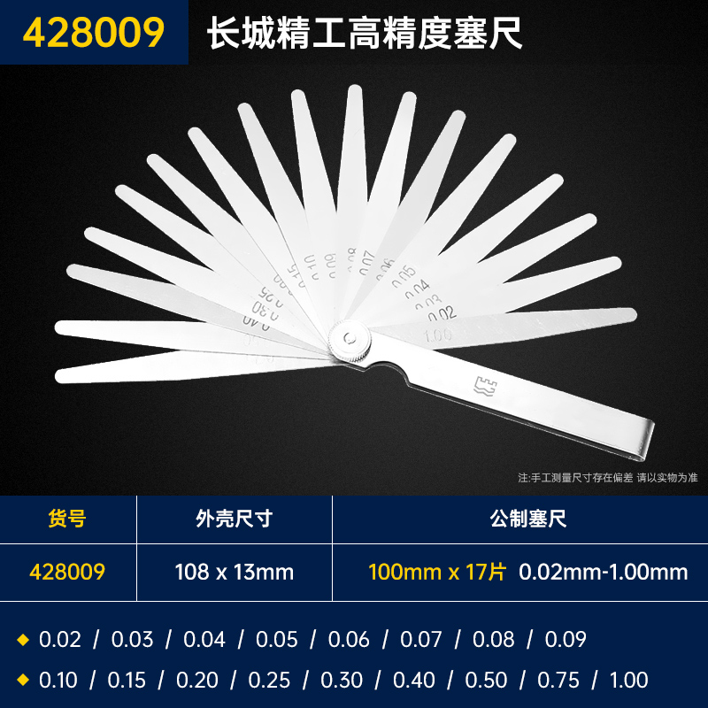 长城精工 17片公制塞尺 428011 0.02~1.00mm 1个