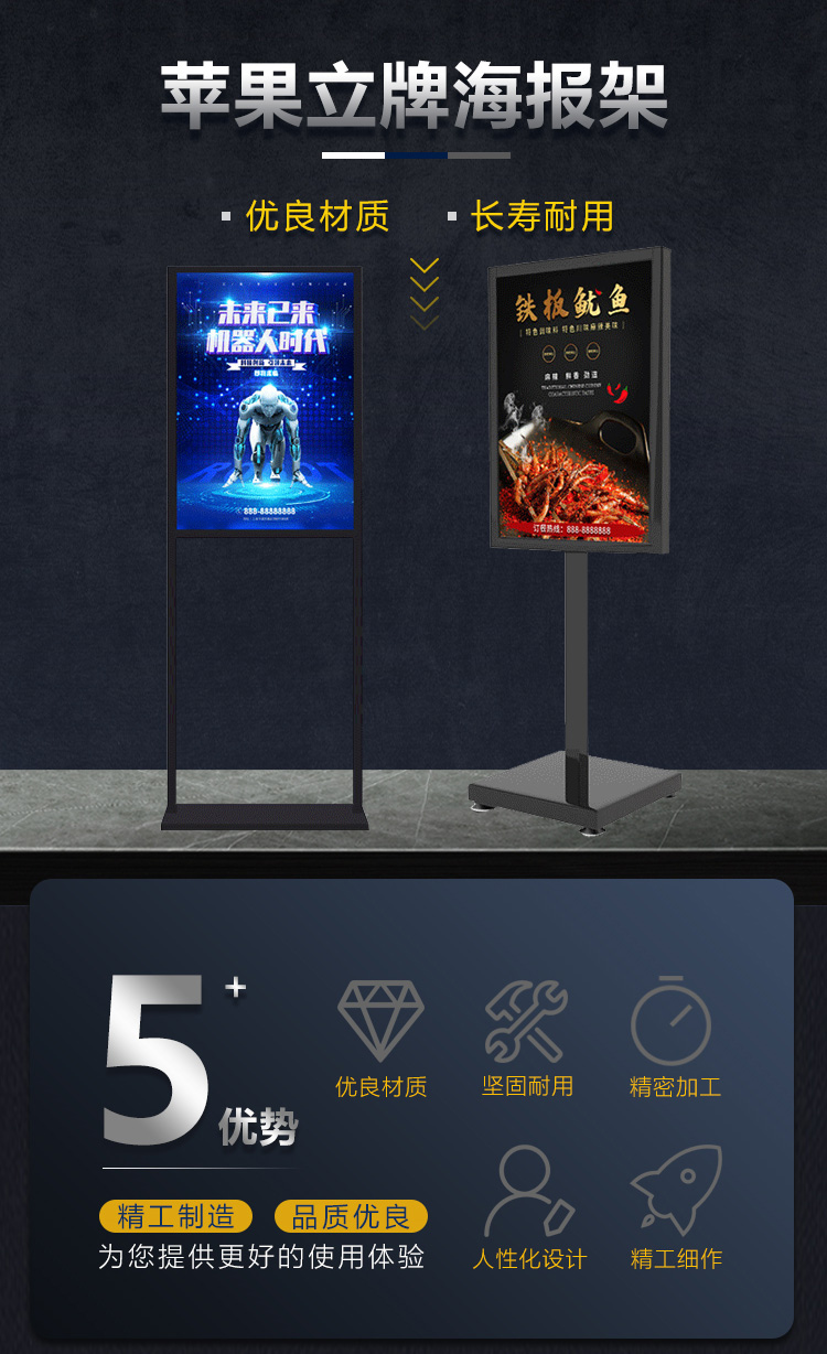 海斯迪克 立式导向牌 KS142-1 苹果黑 50*70cm 1个