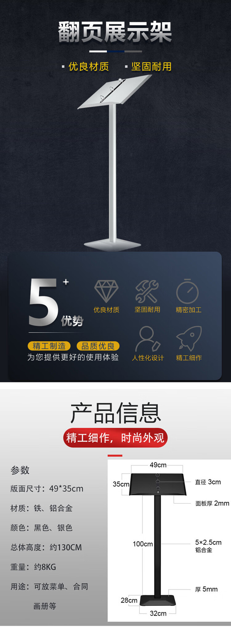 海斯迪克 立式导向牌 KS142-3 黑色菜单翻页展示架 49*35cm 1个