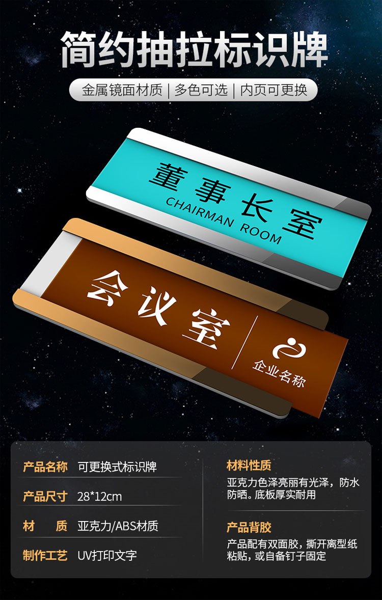 海斯迪克 银色竖挂牌 简约抽拉标识牌 KS144-8 金属/PVC 28×12cm 1个