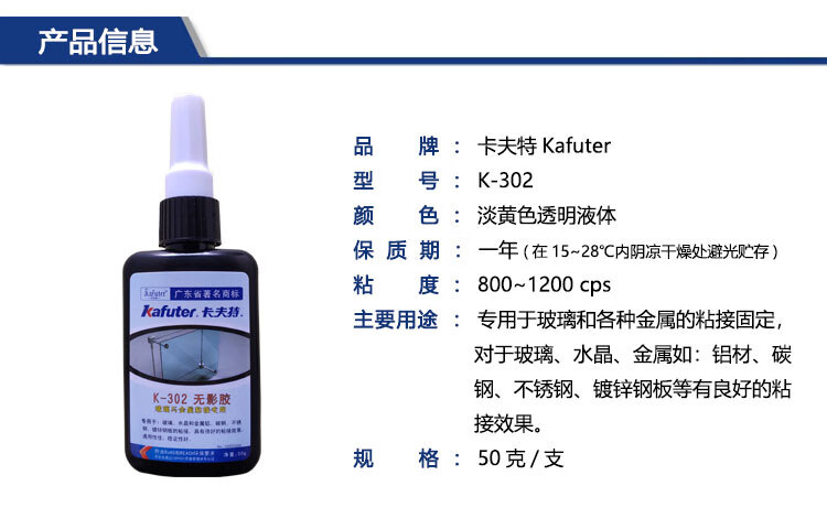 卡夫特 玻璃金属铝材不锈钢粘接UV胶 K-302 50克 1支