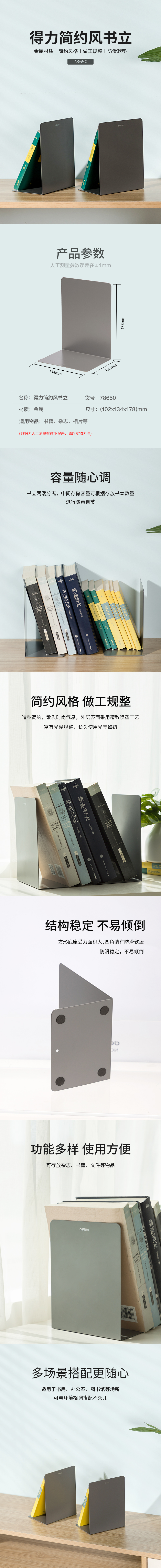 得力 书立 78650 深灰色 103*134*178mm 2个 1付