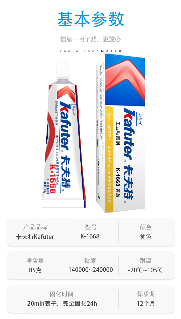 卡夫特 电子定位胶 K-1668 黄色 85g 1个