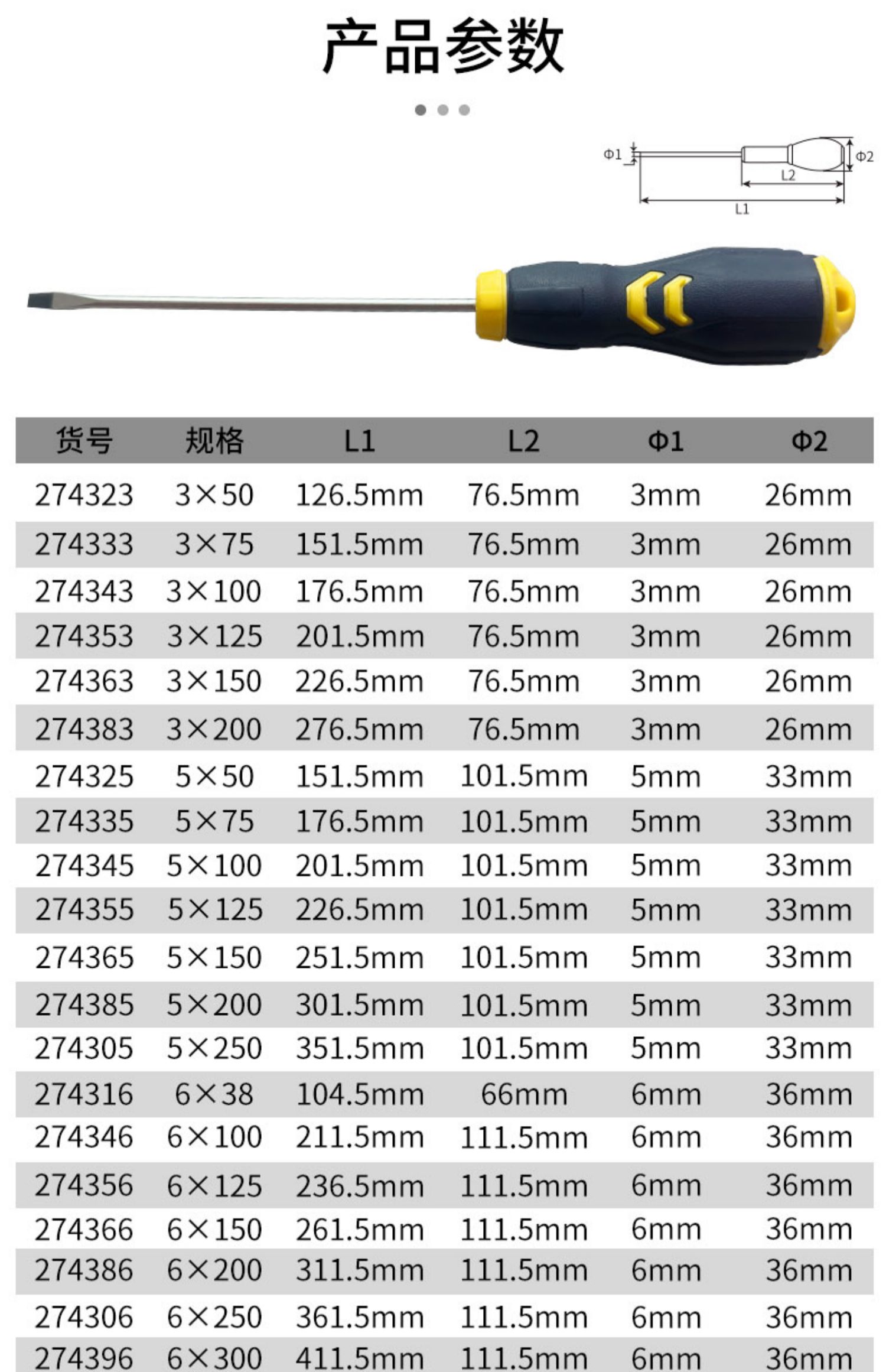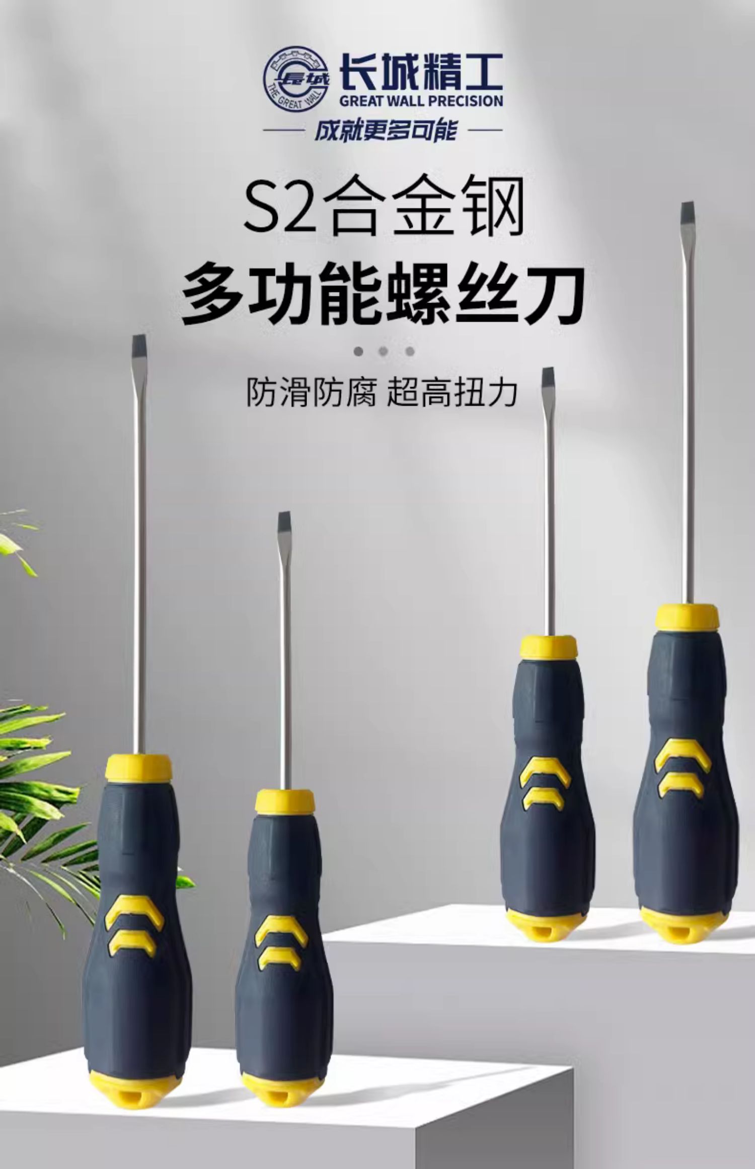 长城精工 S2双色橡塑柄增强型旋具一字 274343 3*100mm(4") 1把