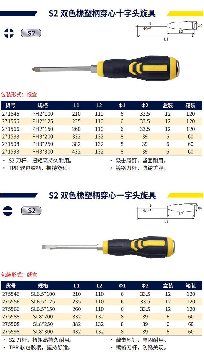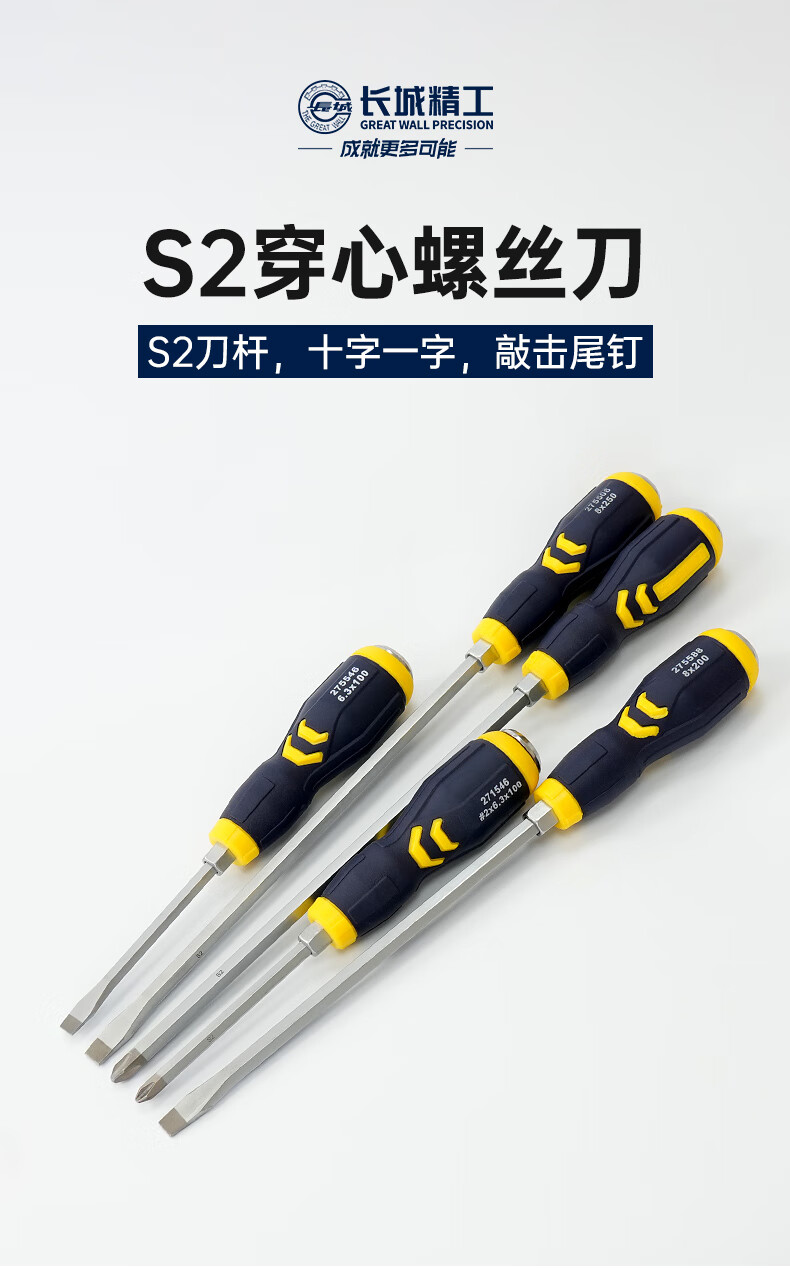 长城精工 S2双色橡塑柄穿心十字旋具 271588 #3*8*200mm(8") 1把