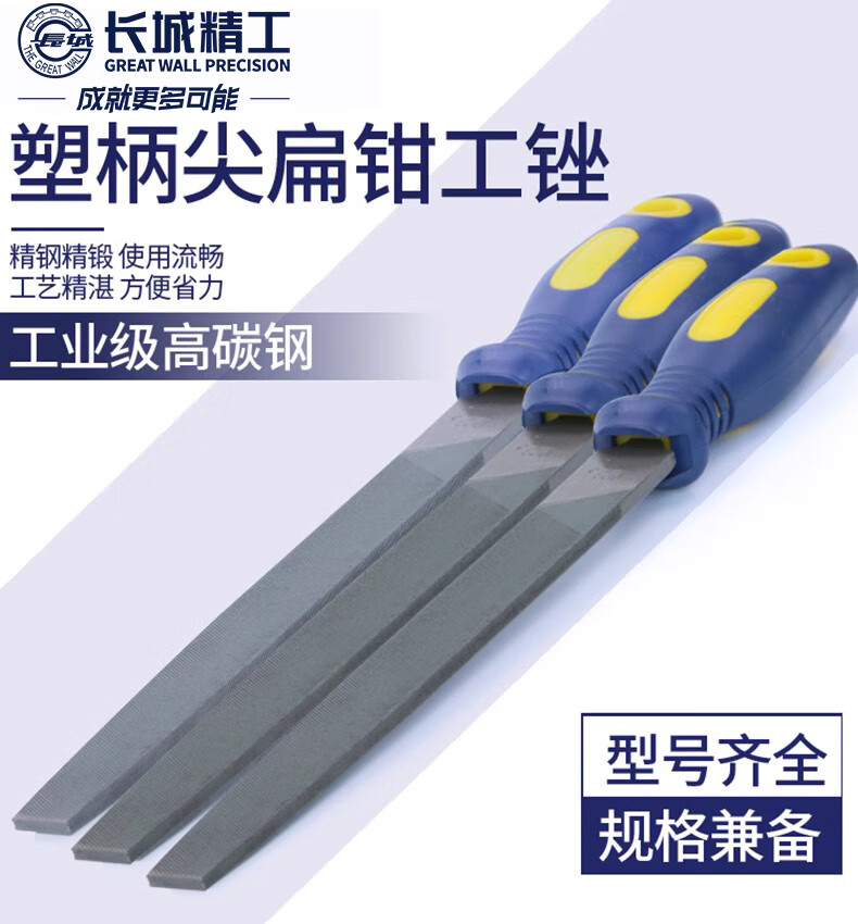 长城精工 塑柄中齿尖扁锉 413711 200mm 1把