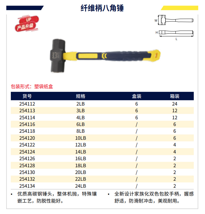 长城精工 纤维柄八角锤 254124 14LB 1个