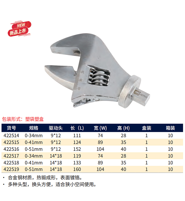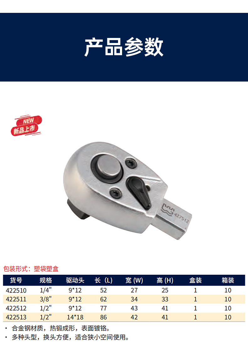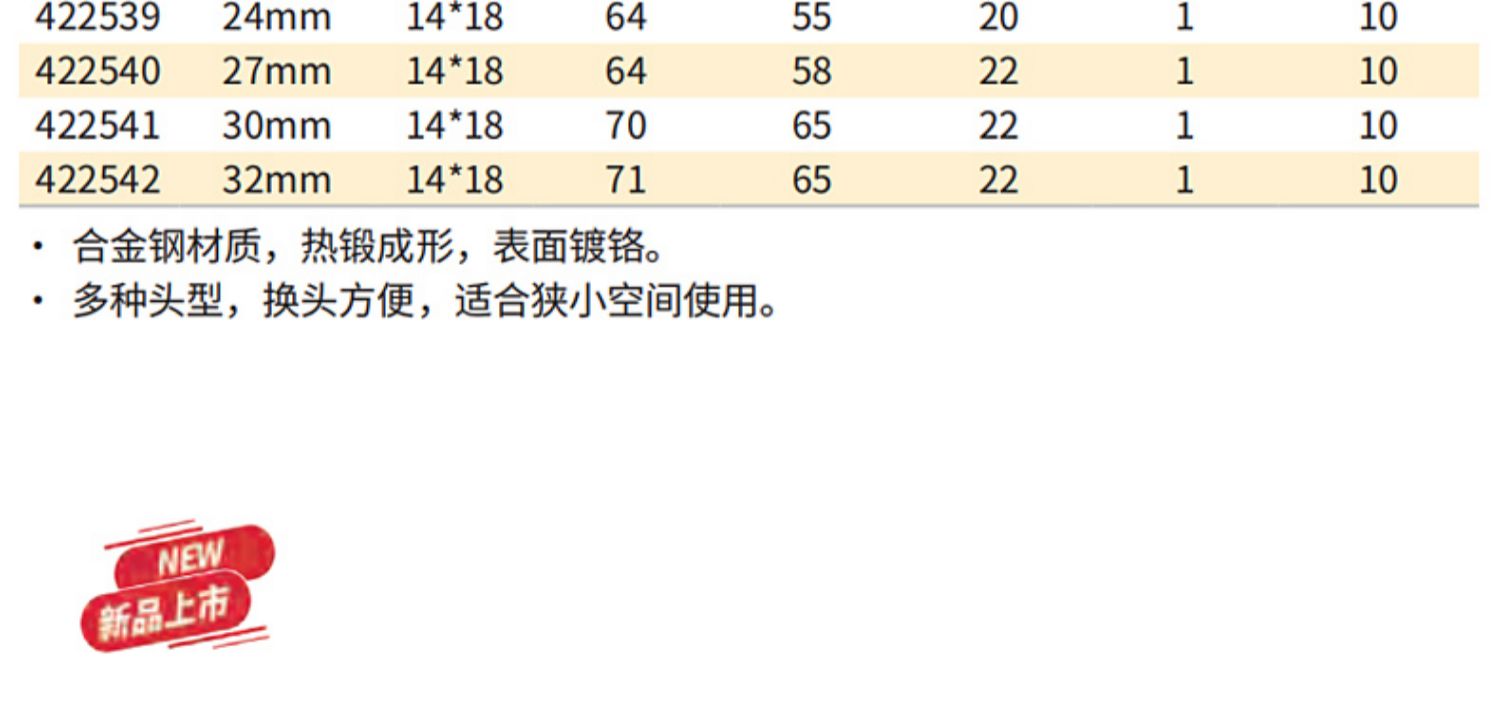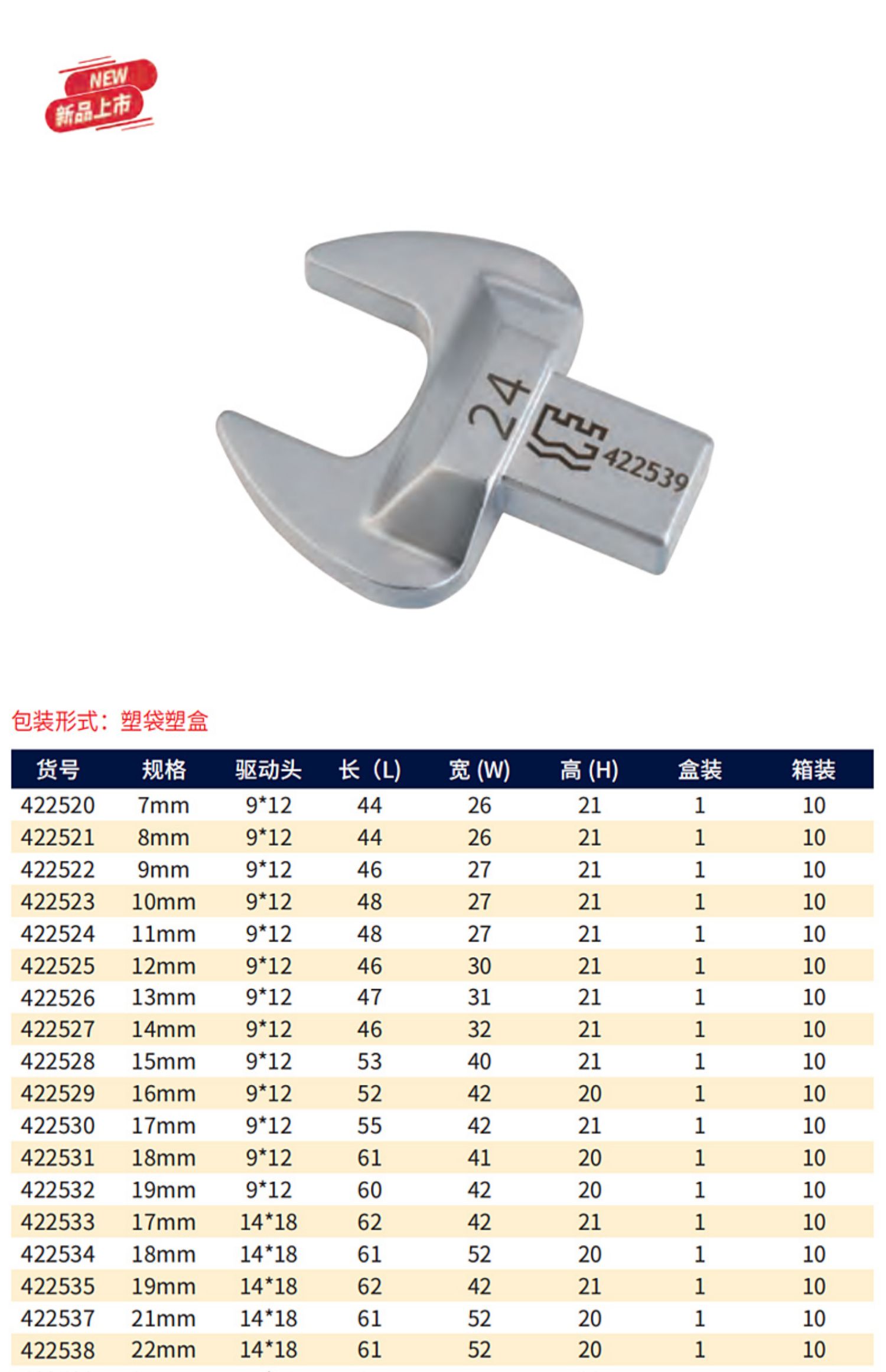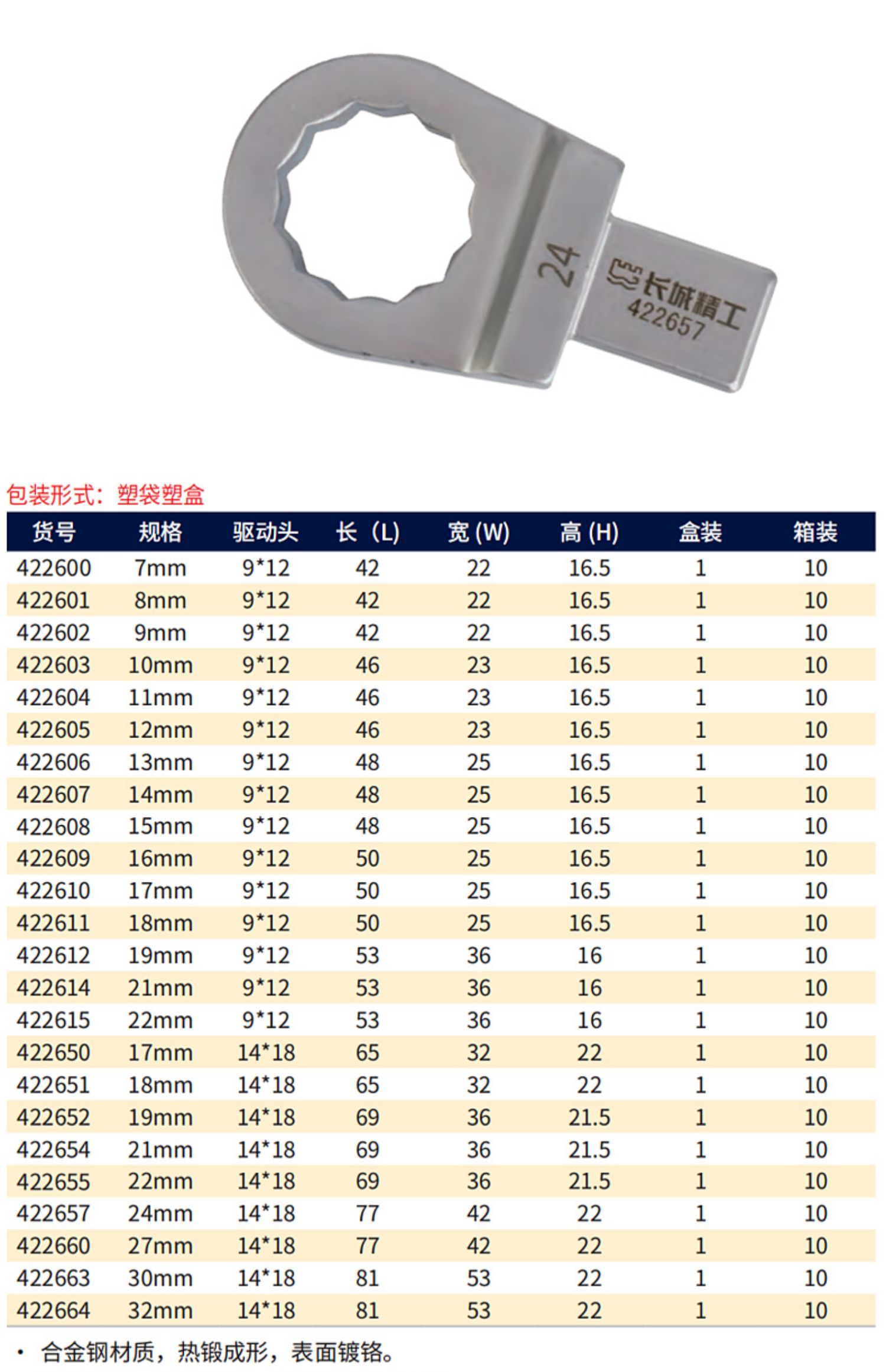 长城精工 9*12扭力扳手开口头 422526 合金钢 13mm 1把