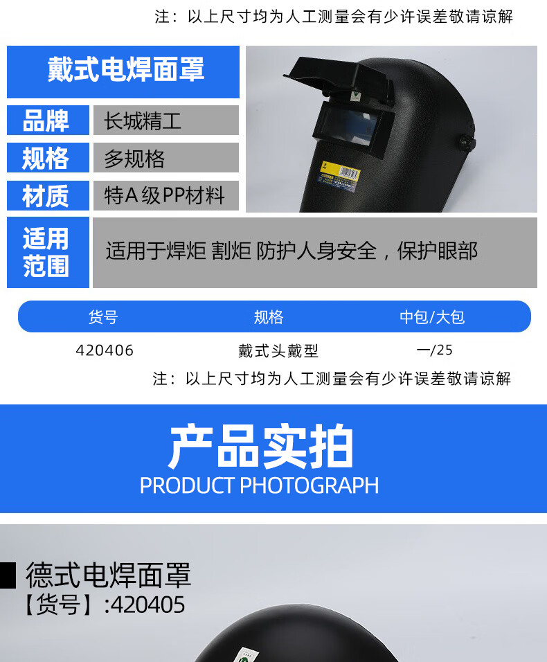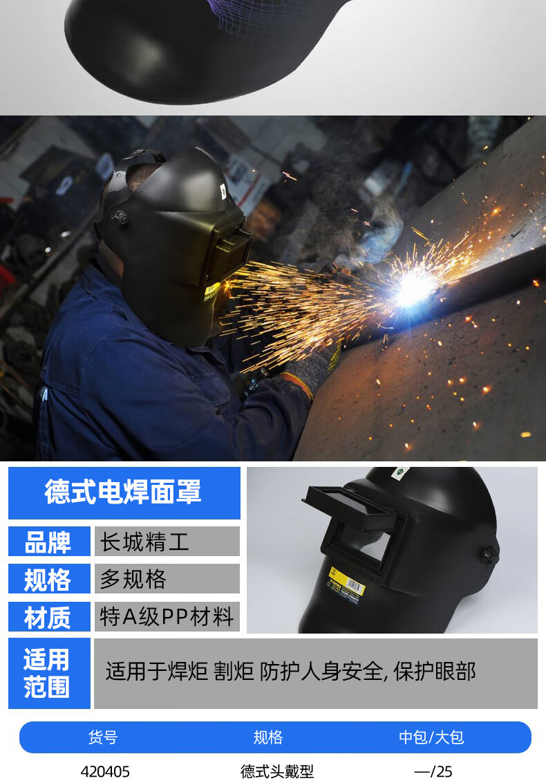 长城精工 德式电焊面罩 420405 头戴型 1个