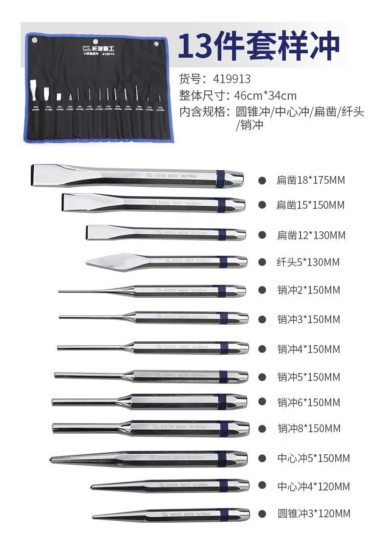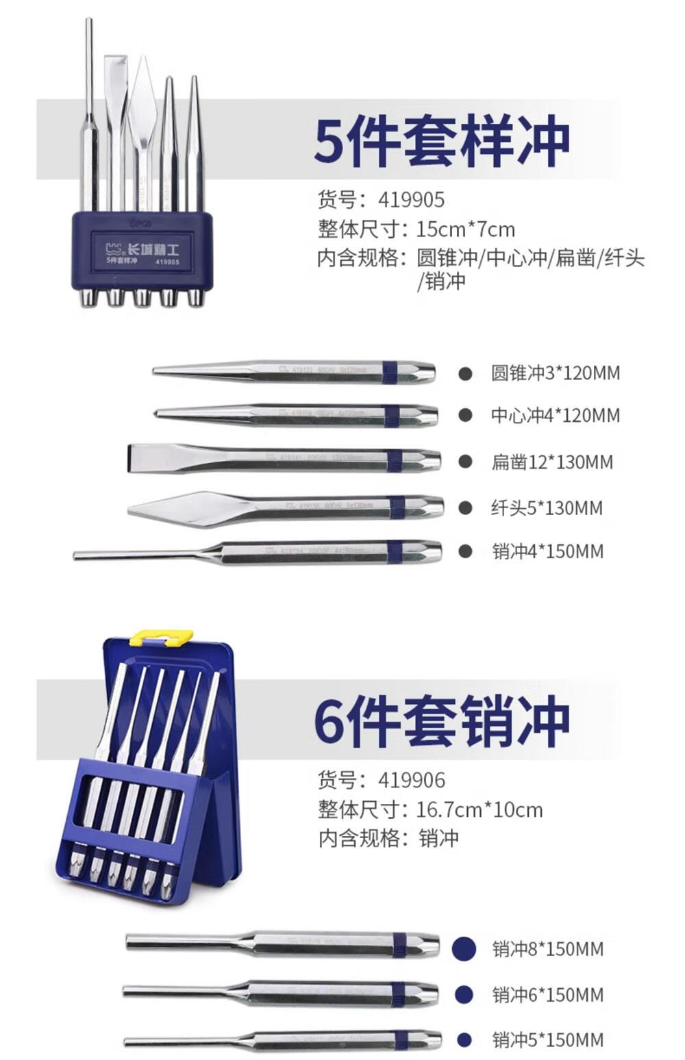 长城精工 圆锥冲 419123 3*9.5*120mm 1个