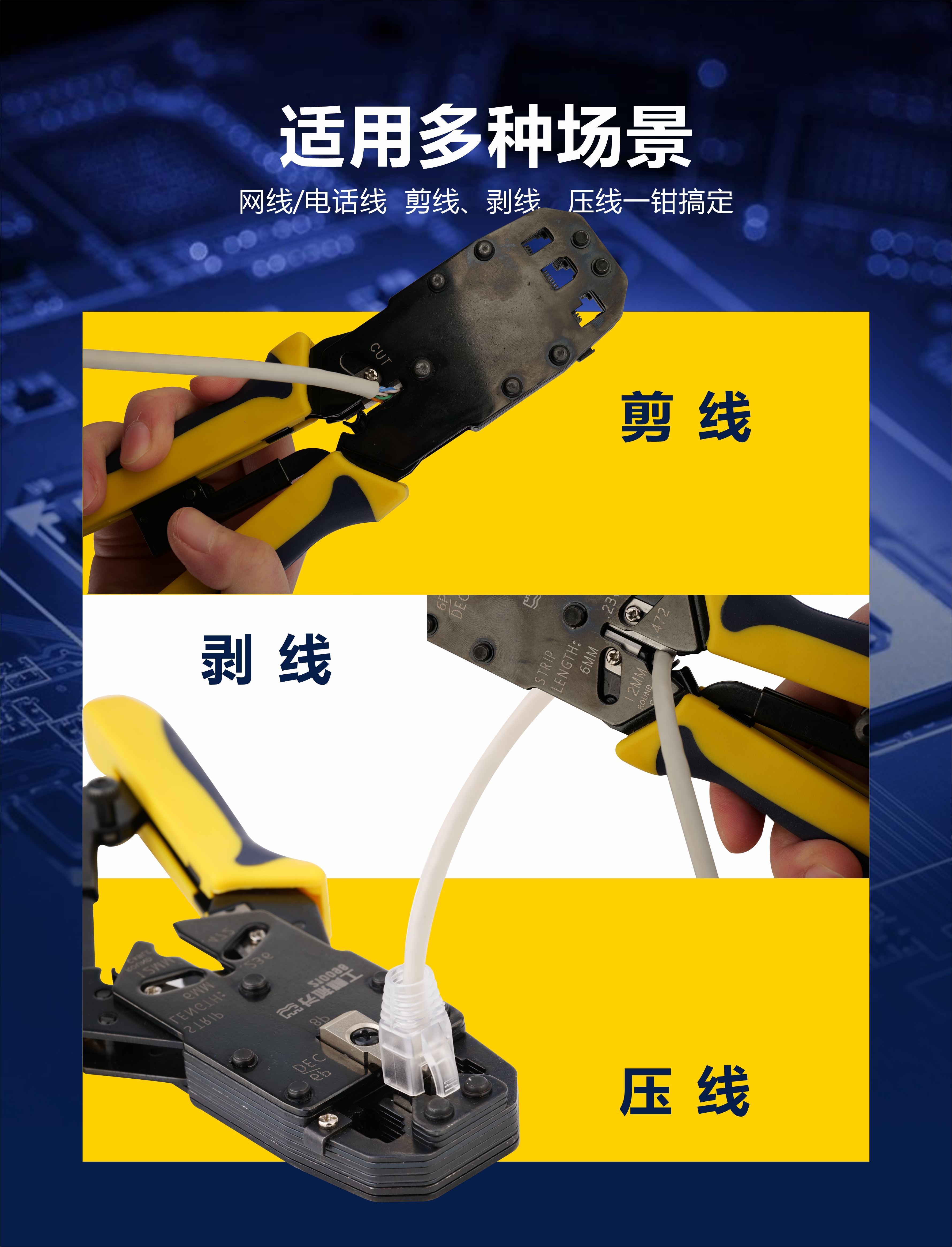 长城精工 网络端子压接钳 210098 4P/6P/8P 1把