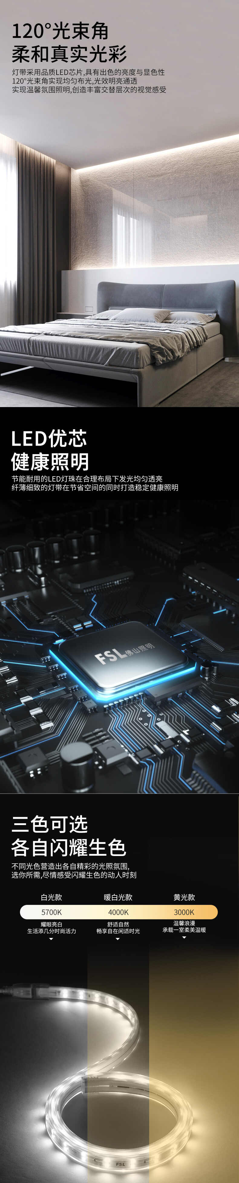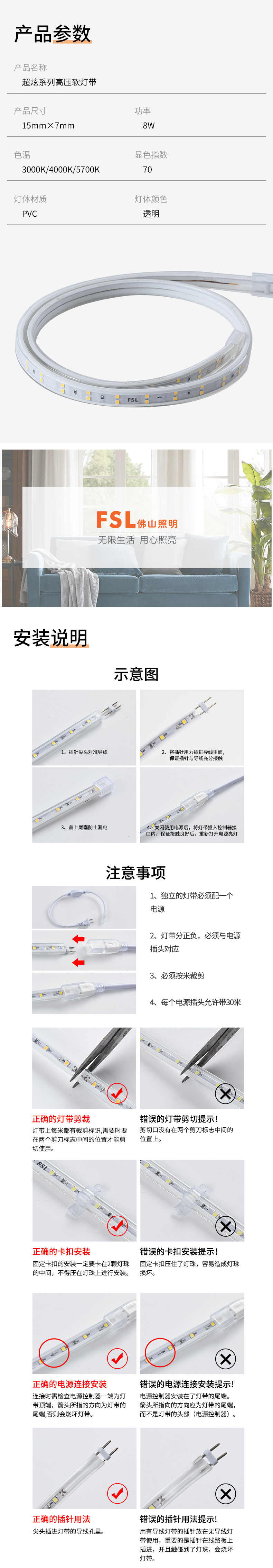 佛山照明 超炫二代无导线LED高压软灯带 8W 白光 5700K 1米