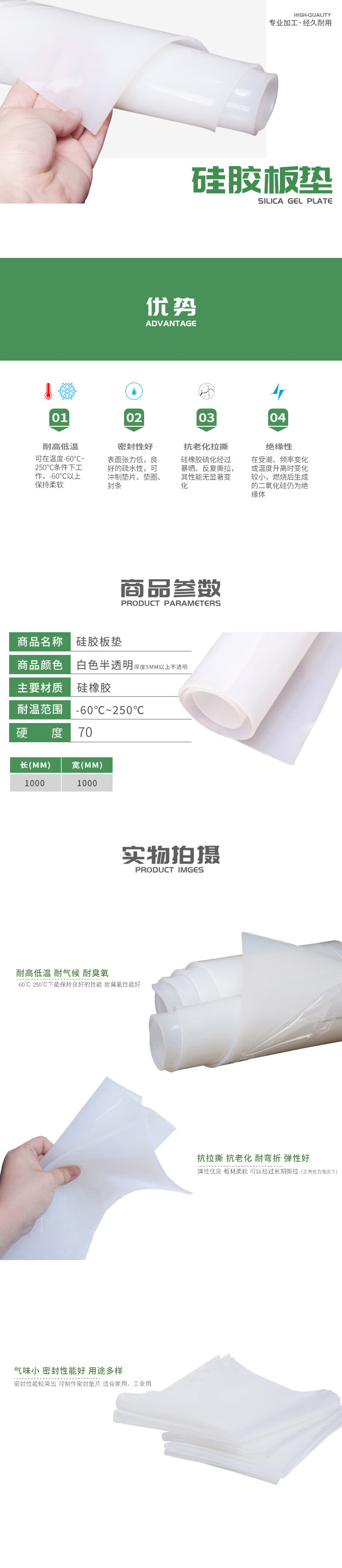 国产通用 硅胶板 白色半透明 1m*1m*2.5mm 1卷