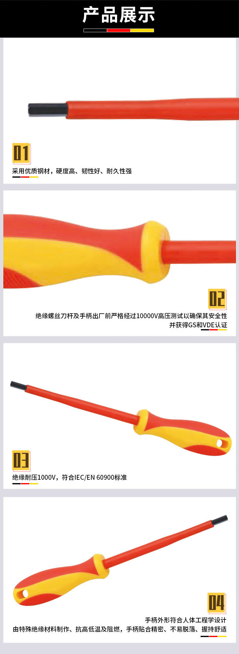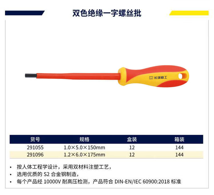 长城精工 双色绝缘一字螺丝批 291096 1.2*6.5*175mm 1把