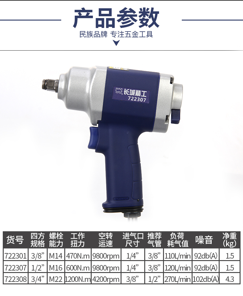长城精工 复合材料气动冲击扳手 722301 3/8" 1个