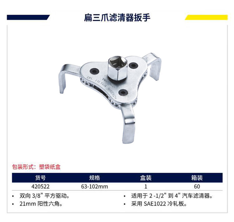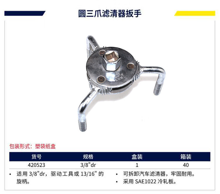 长城精工 圆三爪滤清器扳手 420523 3/8"dr 1个